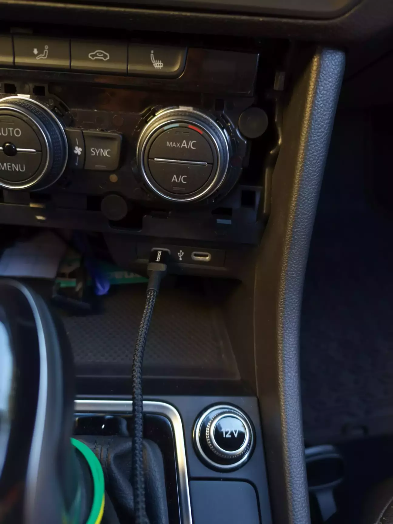 По каталогу запчастин ЕТКА виявилось, що для MK7 встановлювався юсб порт-хаб з подвійним typeC та підтримкою швидкої зарядки - 2G6035700. Куплено в Польщі від VW Taigo 2023 року за 120 злотих не рахуючи доставки. Сам порт тримається купою защіпок з всіх сторін, це був пекельний квест з купою лопаток.