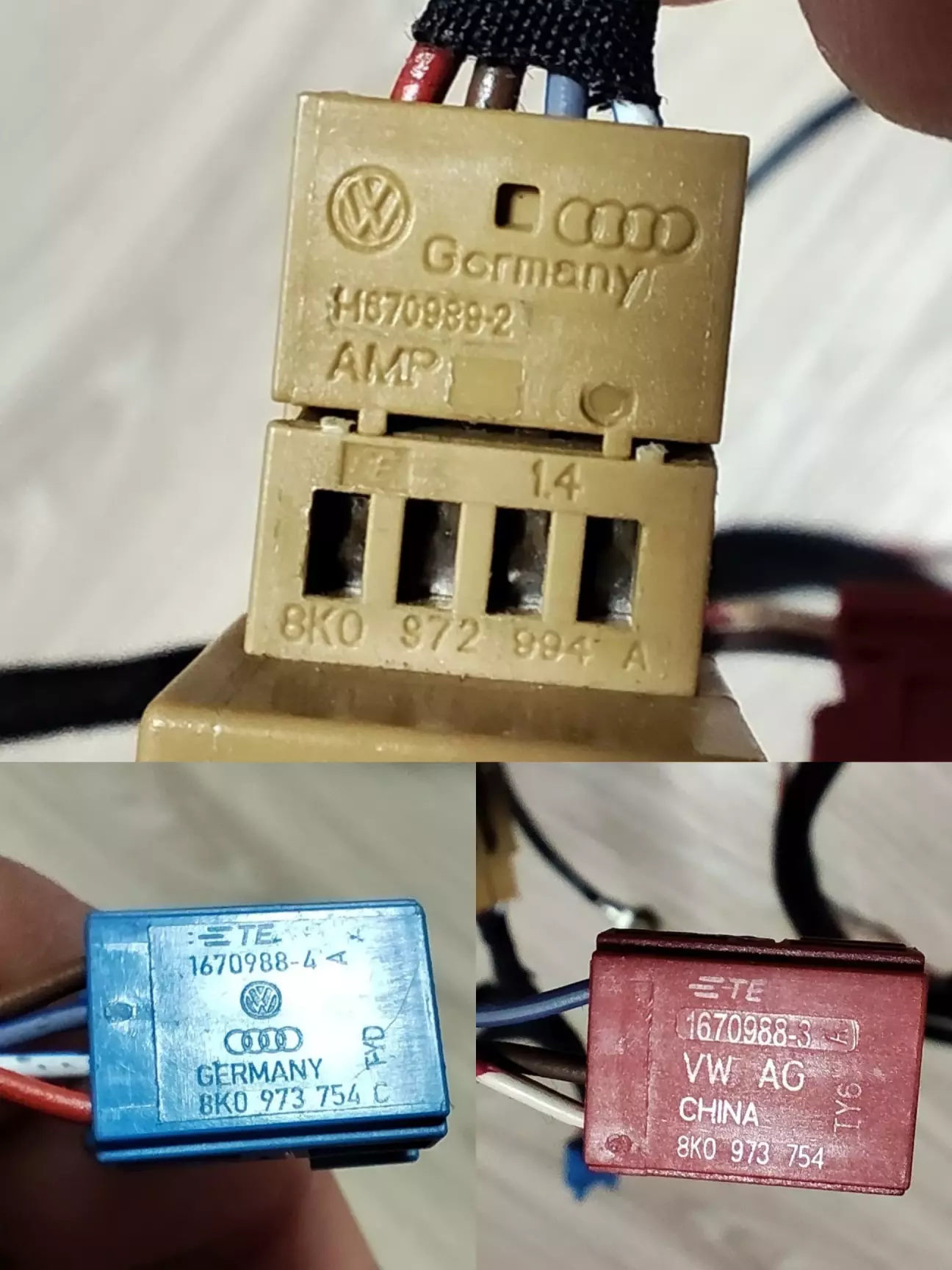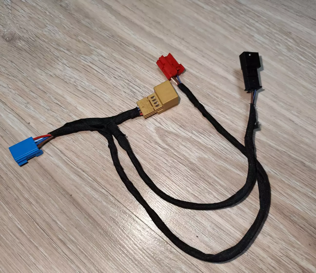 Фішки живлення нового та старого usb порту різні, у т.ч. за кольором. Окрім заміни фішки, необхідно заживити новий хаб 5G0035953D. Для цього також необхідна фішка та піни. Аби не робити додавання дротів для живлення хабу в нову фішку живлення нового порту, виготовив перехідник для зручності і тестів.