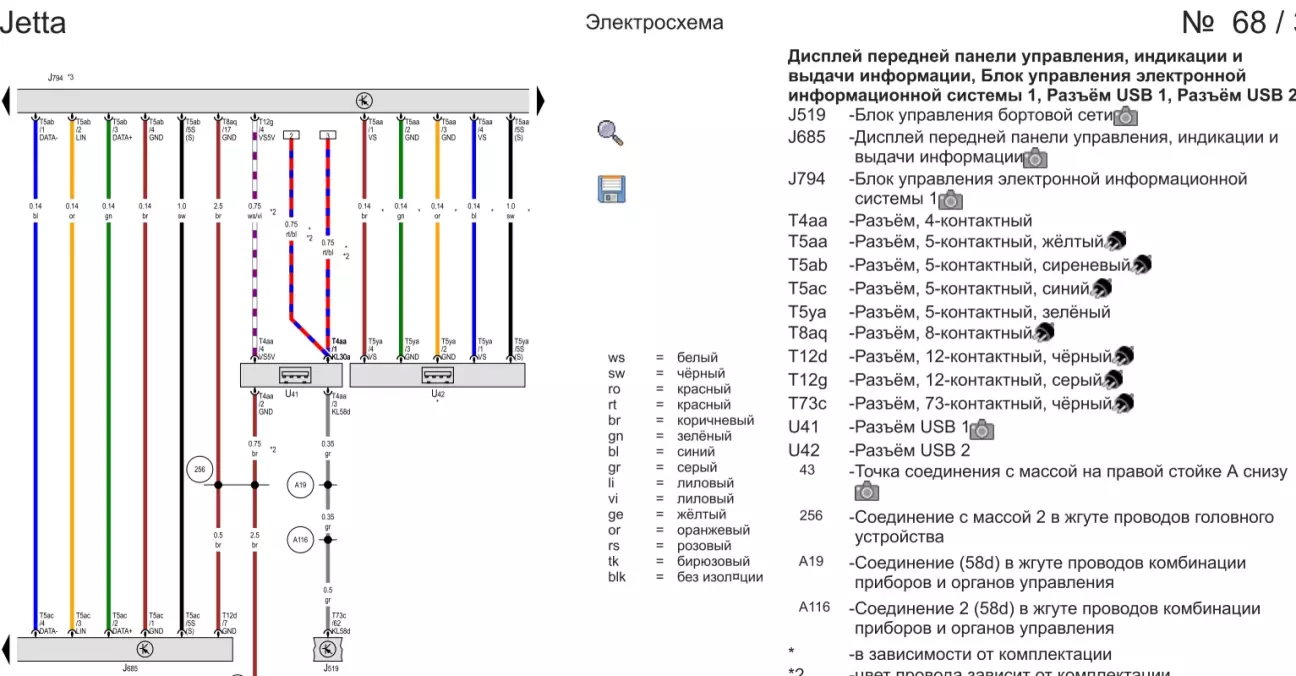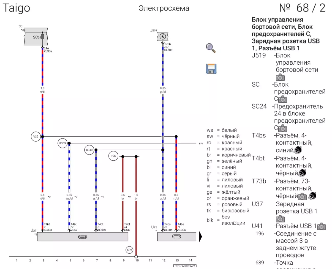 Якщо порівняти схеми підключення Taigo з Jetta, то видно, що підключення живлення (KL30a) та підсвітки (KL58d) збігається. Підключення маси (GND) і сигналу включення (VS5V) змінилося місцями.
