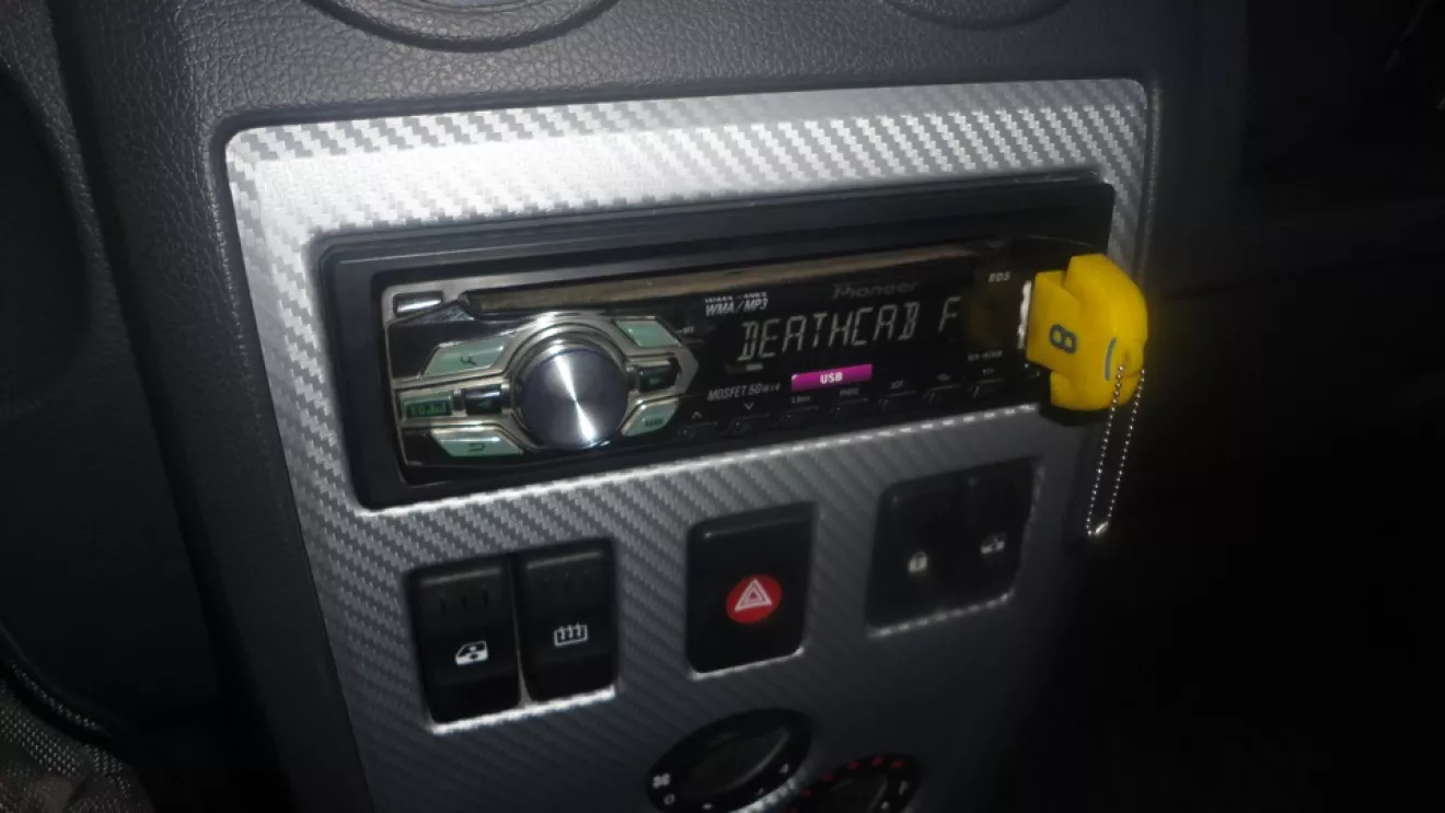 І нарешті перекинув магнітолу=) при покупці машини магнітола була тільки на диск( але підсвітка червона…якраз в колір панелі=) спершу думав не міняти (так як своя магнітола з зеленою підсвіткою, але з флежкою і ауксом) але практичність перш за все! диски дуже напряжно постійно записувати( поміняв і все=)