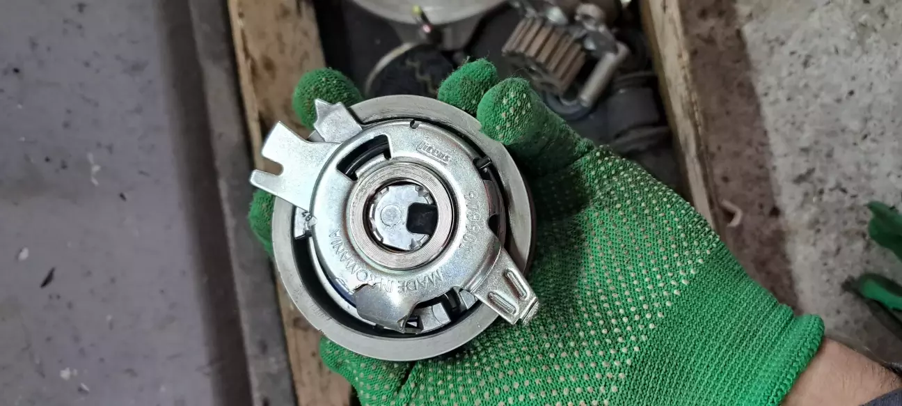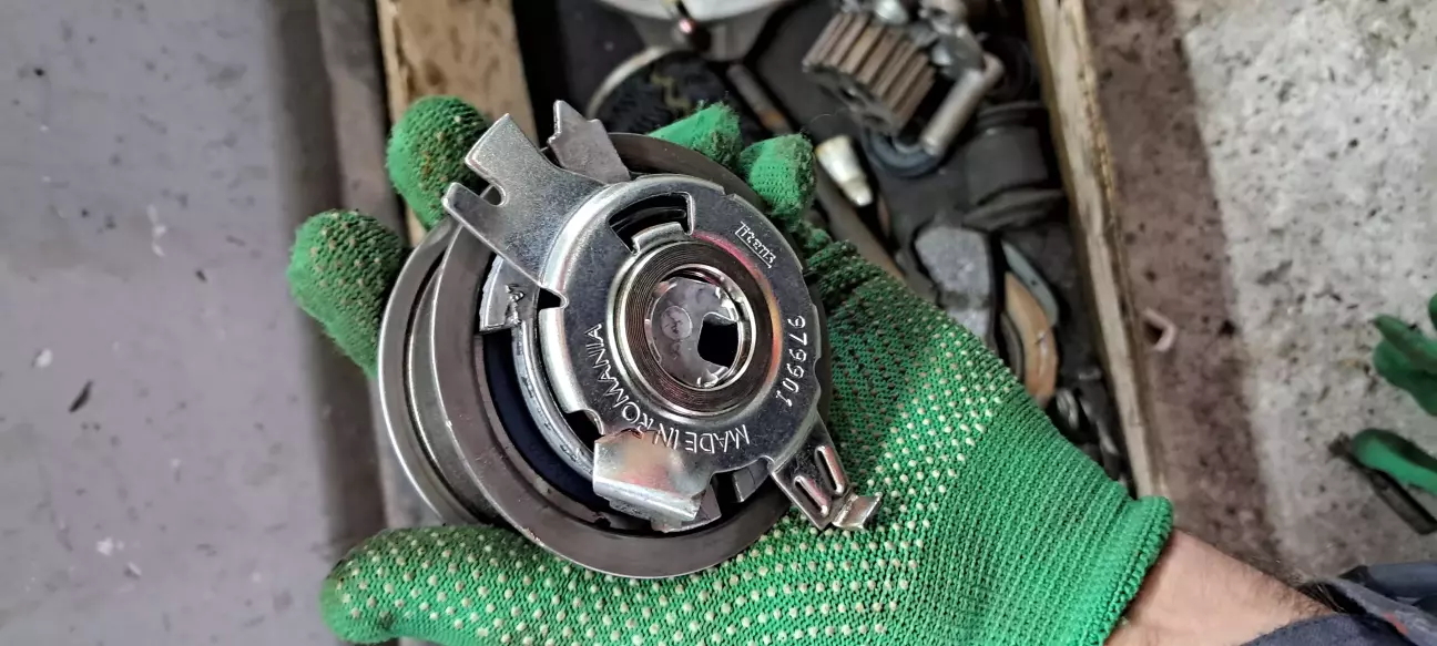 Як виявилося, комплект ГРМ дійсно був свіжий. Проте, натяжний ролик перетягли. Тому ремінь ГРМ трохи сповзав та руйнував помпу. Помпа почала підтікати.