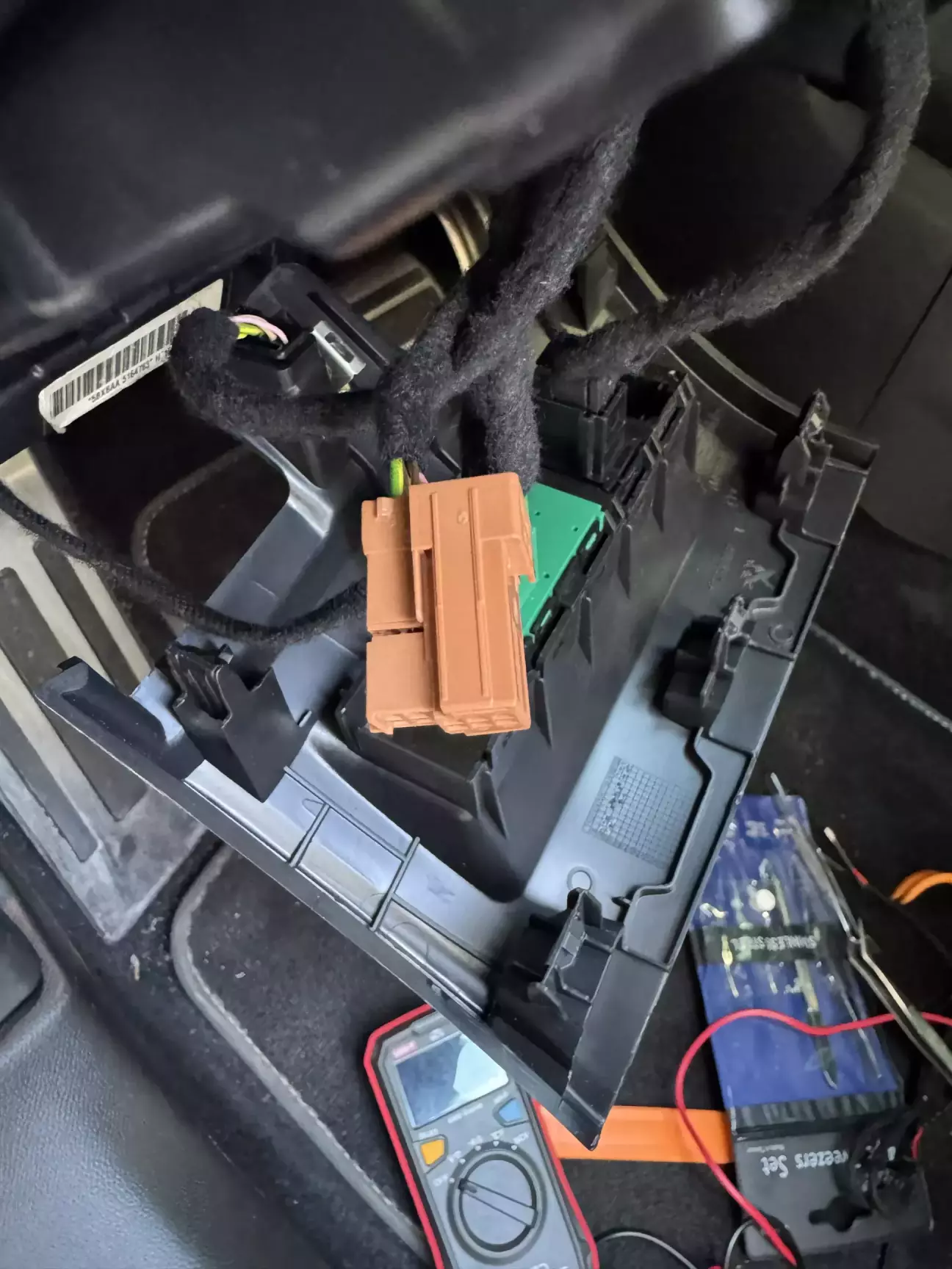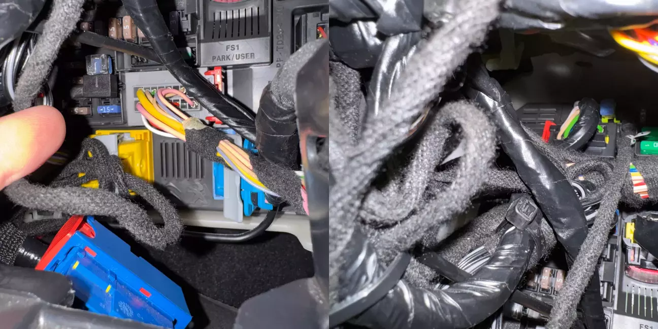 Як вже згадував раніше все підключення реалізовано без врізки в рідну проводку, хоча перепакування розʼєму під кнопку інтерʼєру теоретично можна віднести до такого, але будемо вважати, що це не втручання в рідну проводку :) Живлення береться з блоку BSI через розгалуджувач запобіжника, також додаткове підключення для сенсору ноги, звісно на запобіжник запалення через розгалуджувач запобіжника.