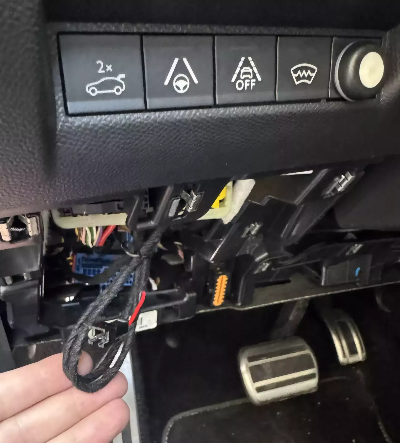 Як вже було описано в інструкції від Fatal_Hamster в авто вже присутній розʼєм (коричневого кольору) під додаткову кнопку для сигналізації. Він нам також підходить, не зовсім ідеально, але ми його трохи адаптуємо під китайський ECU модуль керування.