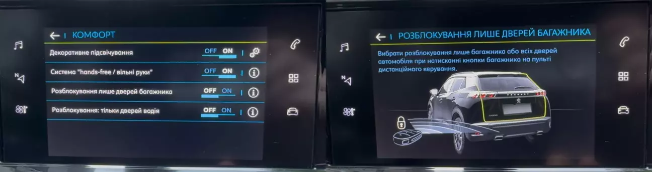 Ну тут особо немає про що розписувати, все доволі просто - компʼютер підключив, замінив середню кнопку на ключі з освітлення на відкриття багажника, є варіант вибрати коротке або довге натискання, обрав довге, щоб мінімізувати випадкове натискання і відповідно відкриття. Бонусом отримав додаткове налаштування через мультимедіа - відкриття лише багажнику, чи всіх дверей. Обрав відкриття лише багажника, мені так зручніше, ну і, мабуть, безпечніше.