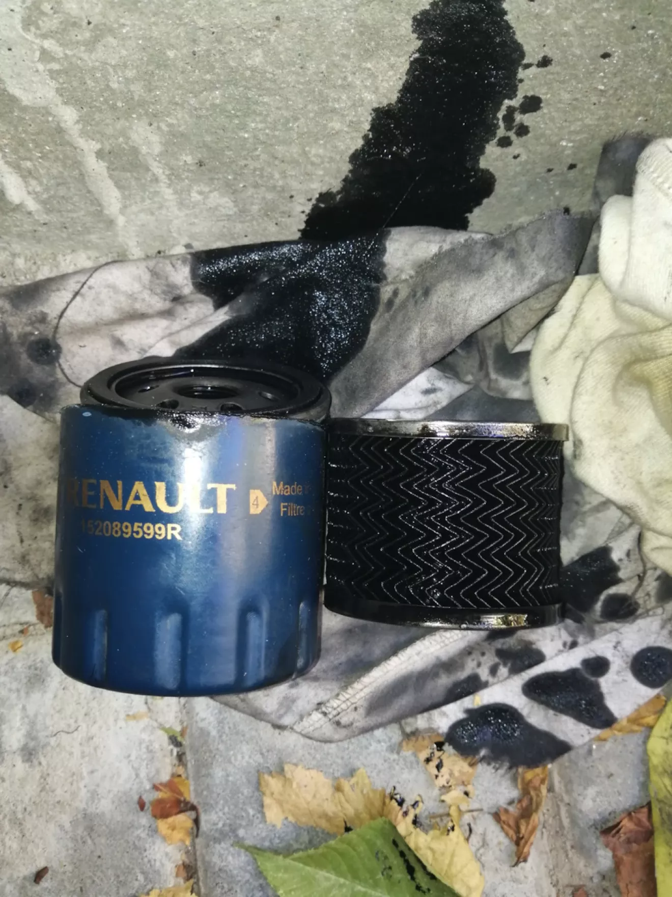 В прошлую замену первый раз взял Увеличенный маслянный фильтр 152089599R и после замены масла решил его пильнуть, что бы глянуть что внутри) И что то я ниче не понял, когда пилил обычный фильтр, фильтрующий элемент был на весь корпус, в этом же по ходу точно такой же, и внизу стоит пружинка на 2-3 см…
