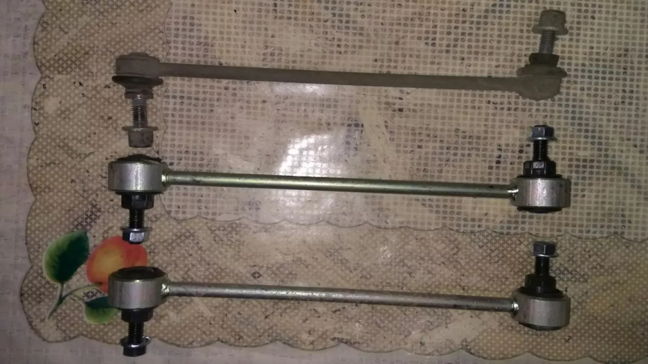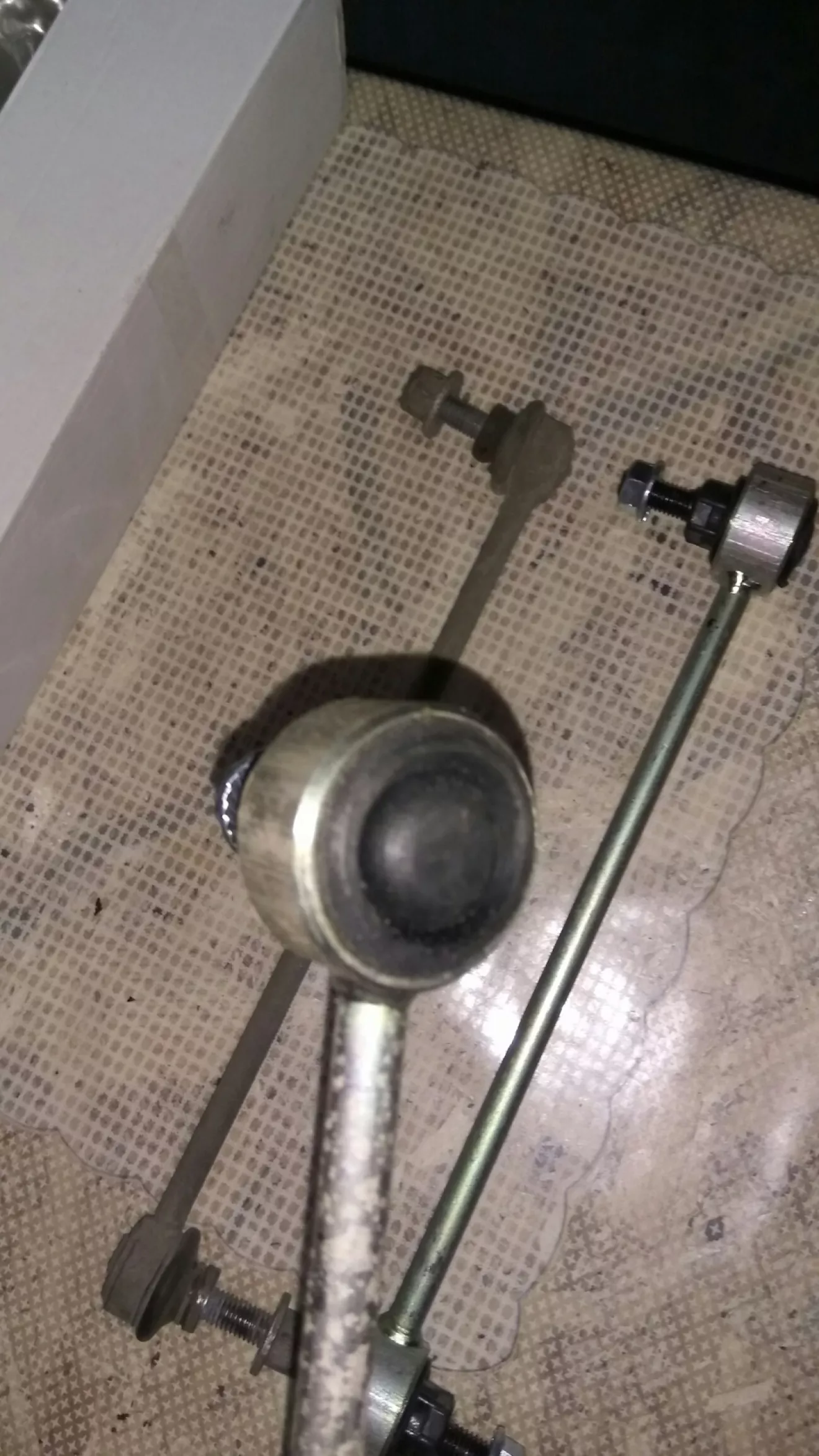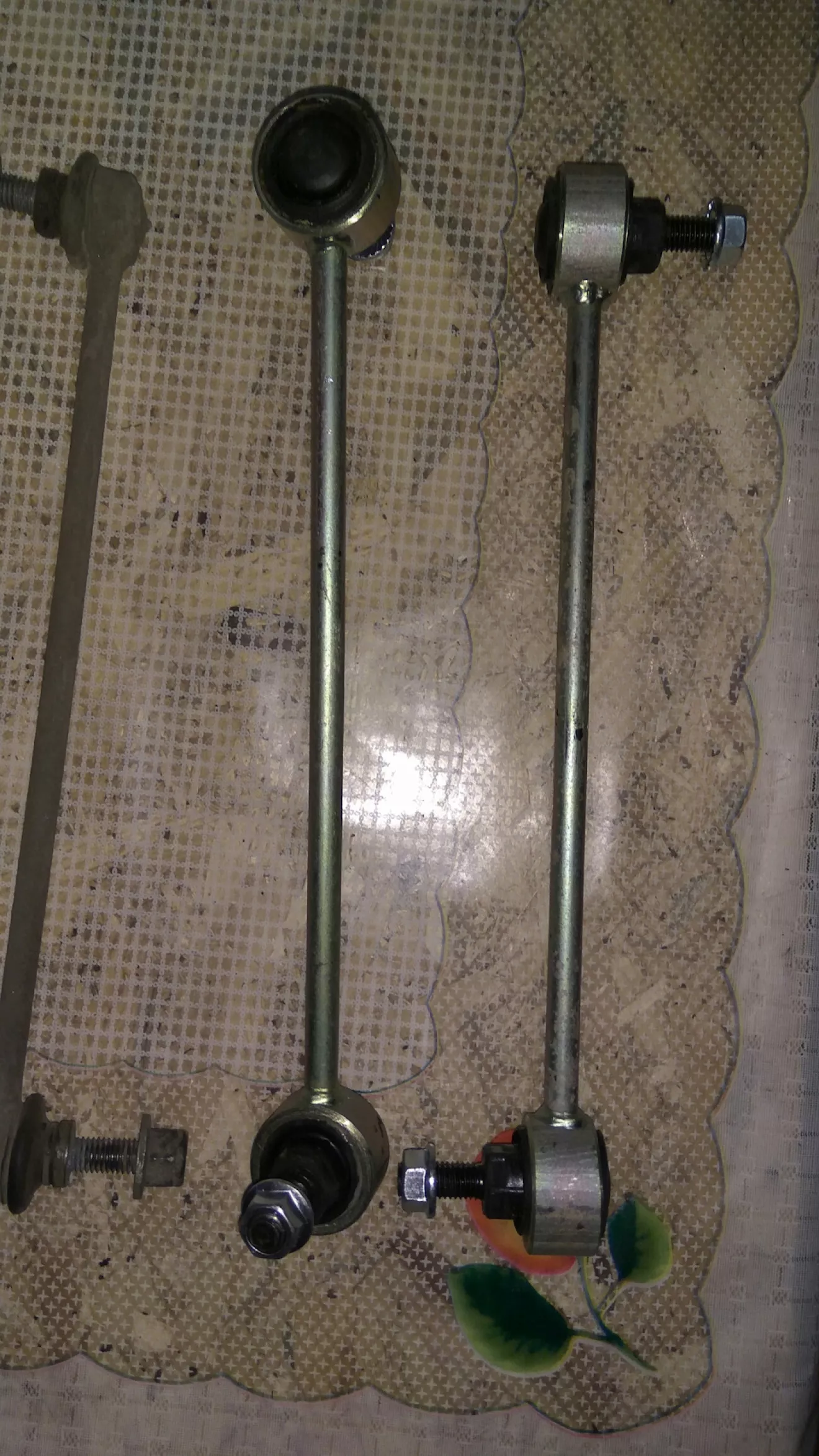 Надоело менять каждые пол года тяги стабилизатора, последние реношные прошли тыс 5, потом начали тарабанить, снял, люфтов не было, но палец возвращался в среднее положение на пыльнике… Вот и оригинальные тяги.
