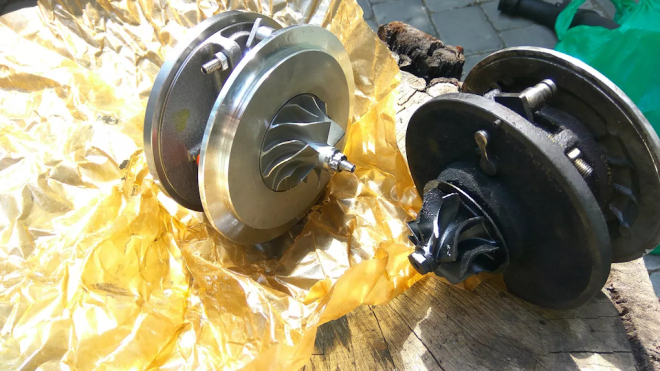 Турбину оставил на последнее, лопасти побитые в холодной части, погнал дисбаланс и разбило втулки, и когда они развалились и повалило масло с воздухом)