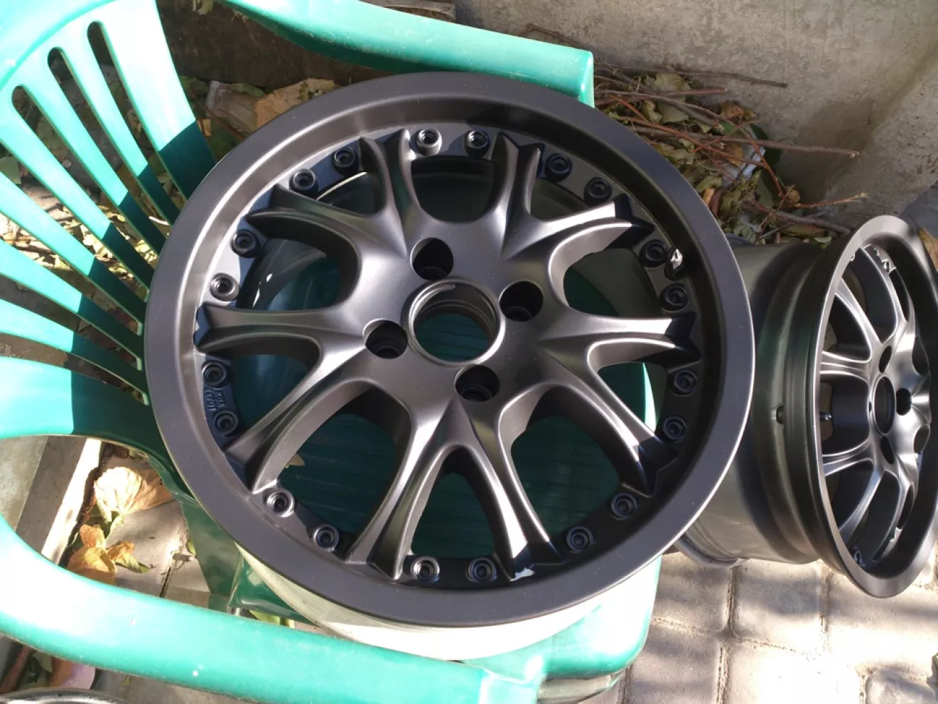 Надоели светлые диски, думал или черный матовый или темно-серый металлик, т.к. были проблемы с матовым лаком, а точнее его не нашел вообще, то решил делать в глянец.