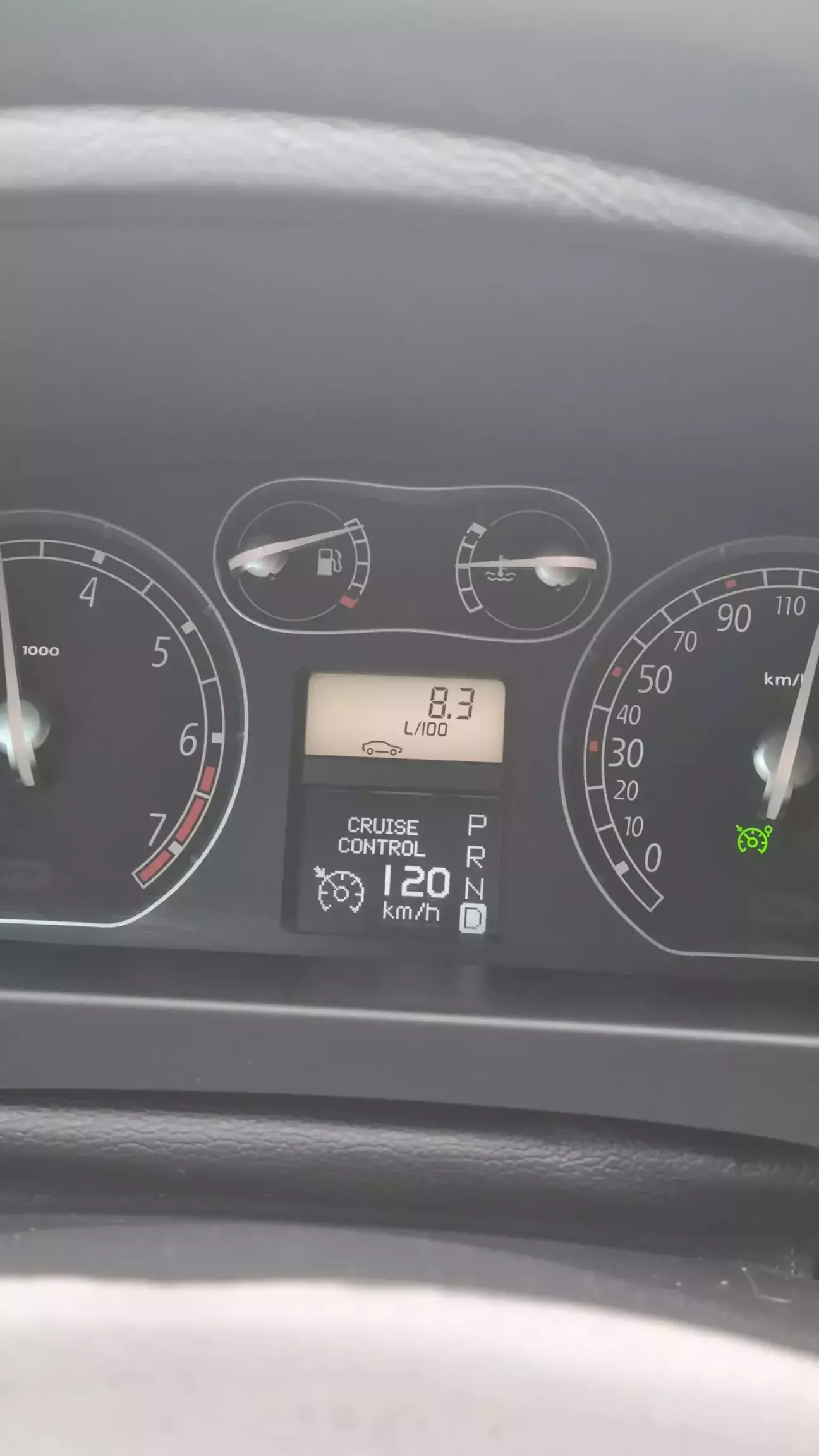 Оберти склали 3100 при 120 км/год, що мені дуже подобається. Тобто не реве та стогне, а нормально шуршить. Лагуна насправді гарно їде і 140, однак витрата понад 10 мене вже ніяк не радує - це психологічний бар'єр)) 7-8 - оптімус прайм. І швидкість приємна, не плентаєшся + не напружує. Що характерно, під час першої поїздки я активно педалював, розганявся до 170 - далі побоявся. Потім після тої поїздки електронний щуп сказав "долий маселка")) Я трохи засмутився, бо подумав "ніхера собі під'їдає", за попередні 4 місяці рівень на місці був. Так, долив десь 400 грам. Але щуп електронний більш чутливий виявився, бо по фізичному наче б і не сказав, що прям там щось пішло. Але галочку собі у голові поставив.