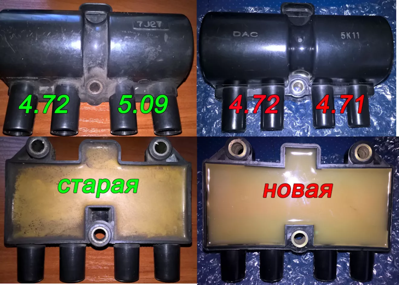 Из за пробитого вв провода, были ВОТ ЭТИ производитель АТ (прошли 30к), пострадала катушка — разница на вторичных составляет около 0,4 кОм, менять лучше на новый или б/у оригинал GM/DAC. На двух разборках в наличии не оказалось, ценники были 650грн и 500грн, нашёл новую DAC_96253555 на ОЛХ за 400грн)))
