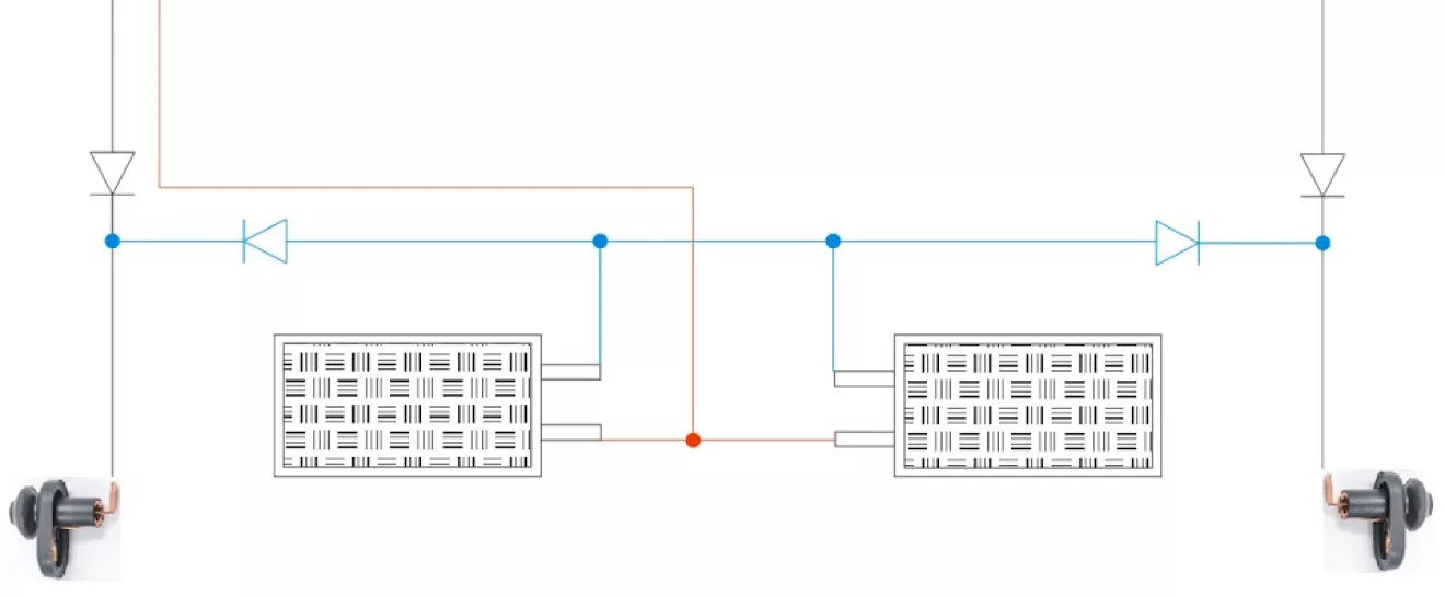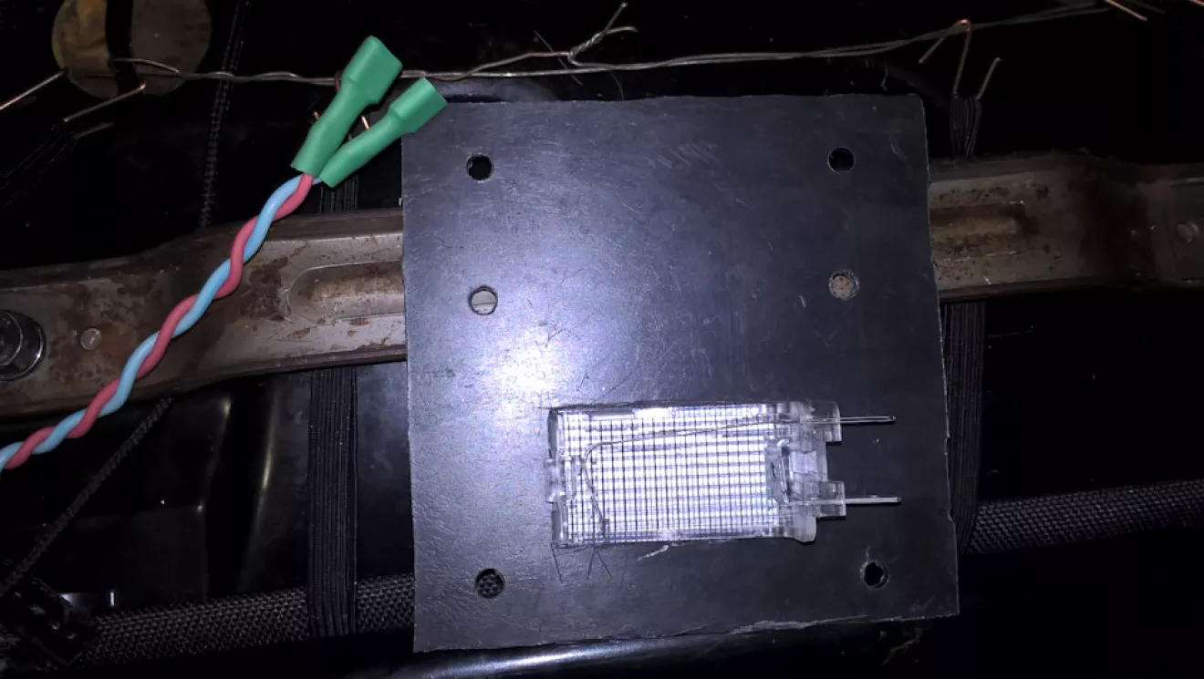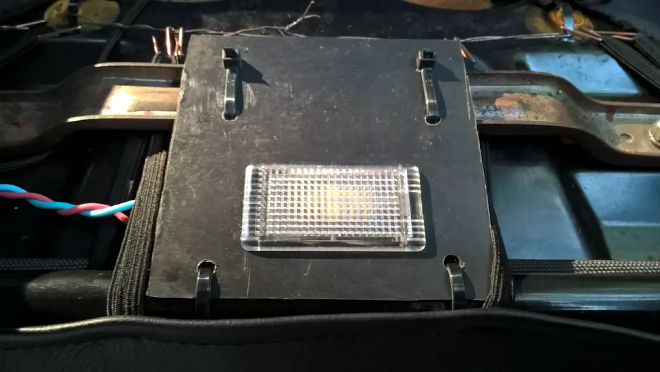 Минус подключил с помощью 4 диодов, чтобы в дальнейшем была возможность сделать подсветку дверей (карт). Освещение включается одновременно у двух пассажиров при открытии любой задней двери. Плафоны закрепил на куске пластика 10см х 10см.