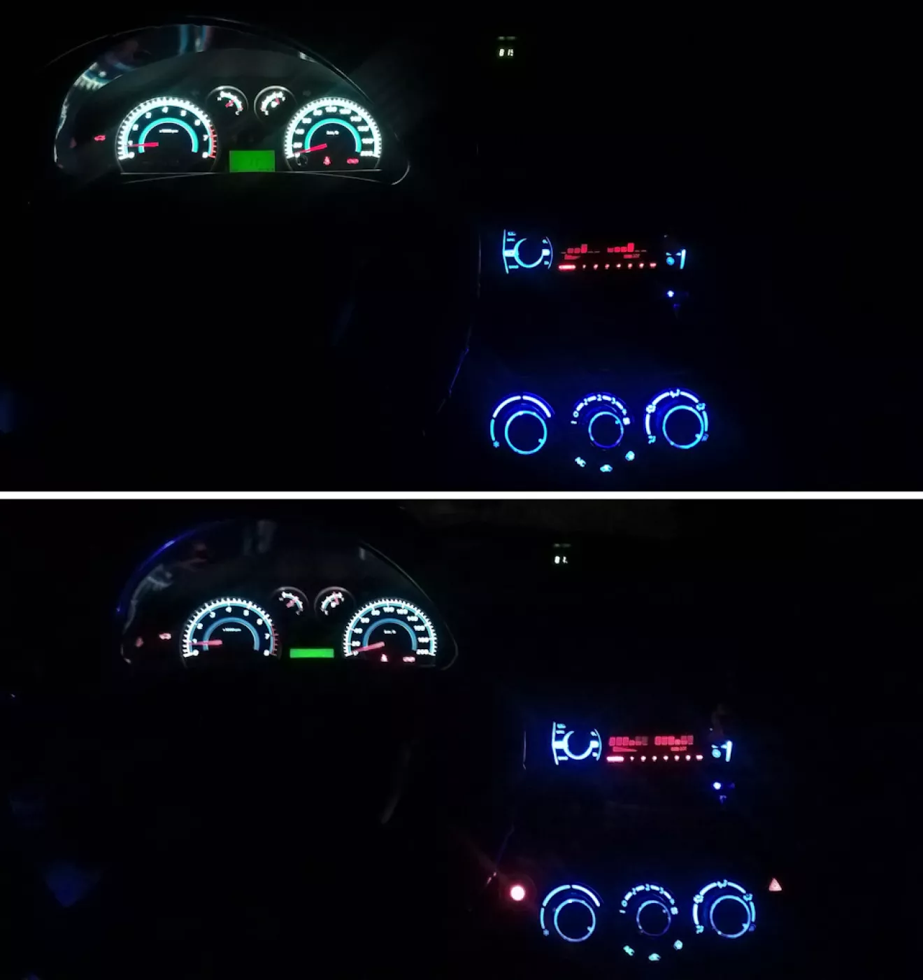 2. Режим для дня — Яркая подсветка приборной панели и блока кондиционера если выключен OFF ручник.