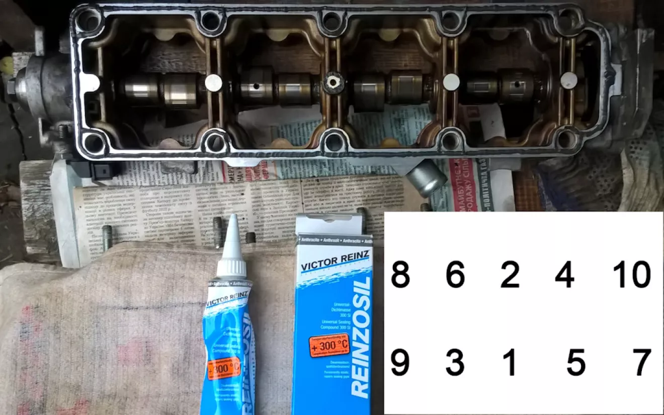 Первая затяжка — 25 Нм, вторая — 45 Нм, (подождал минут 20), третья — 60 Нм, (подождал минут 20), четвертая — 75 Нм, (подождал минут 20), пятая — 80 Нм. Прогрел до 90 градусов, остыла, последняя — 85 Нм. Через неделю прошелся затяжкой в 85 Нм, болты в средине немного до вернулись.