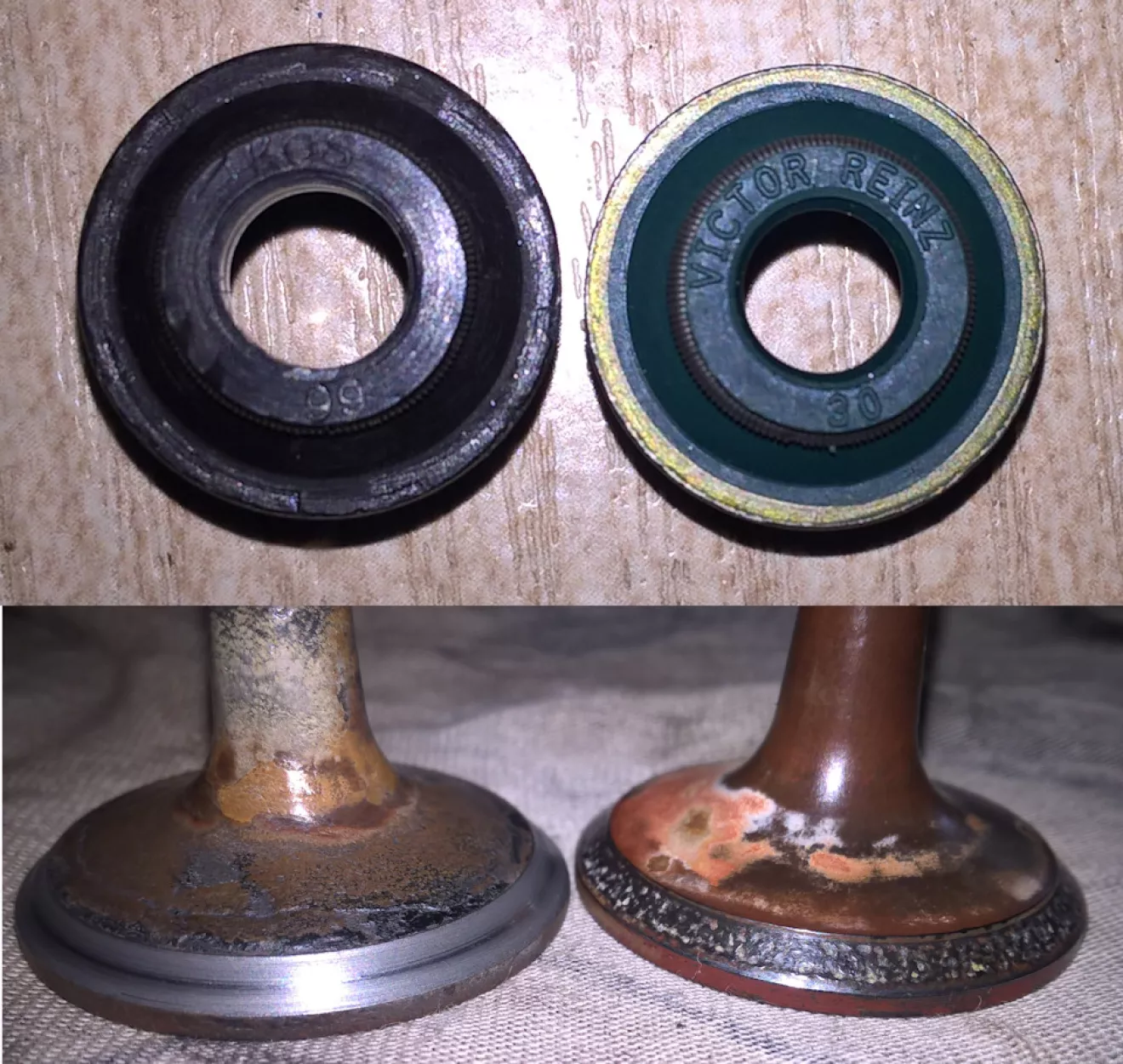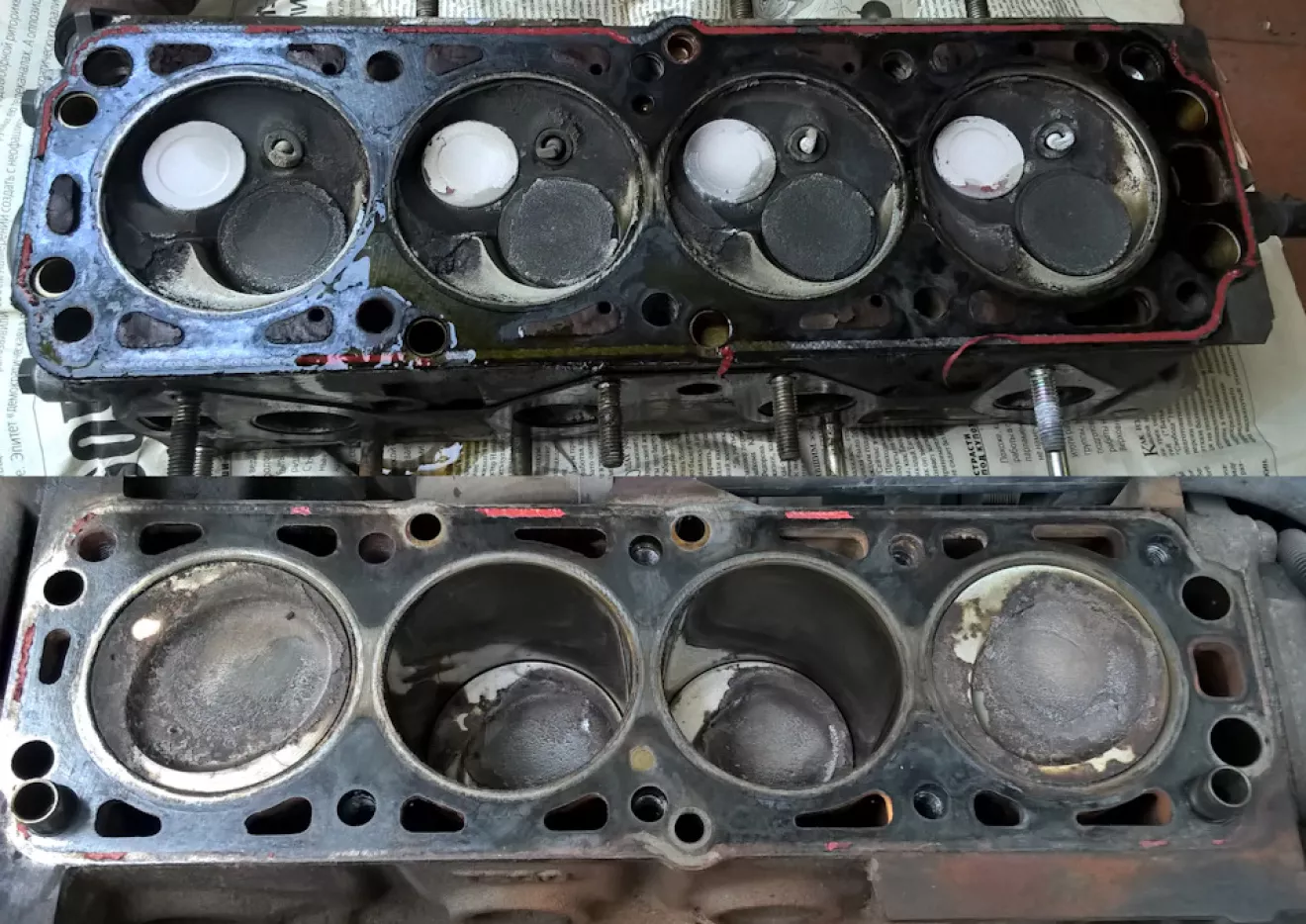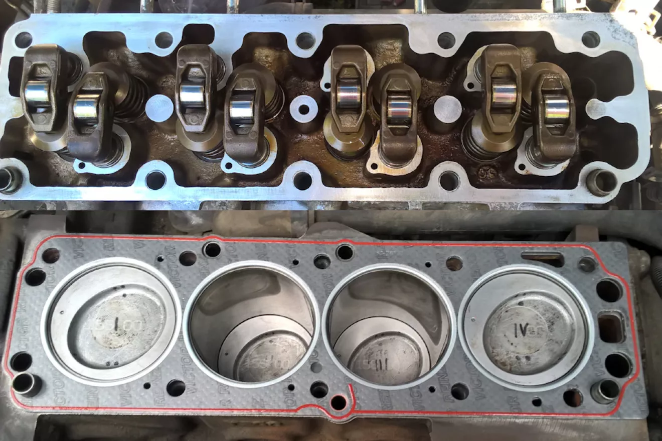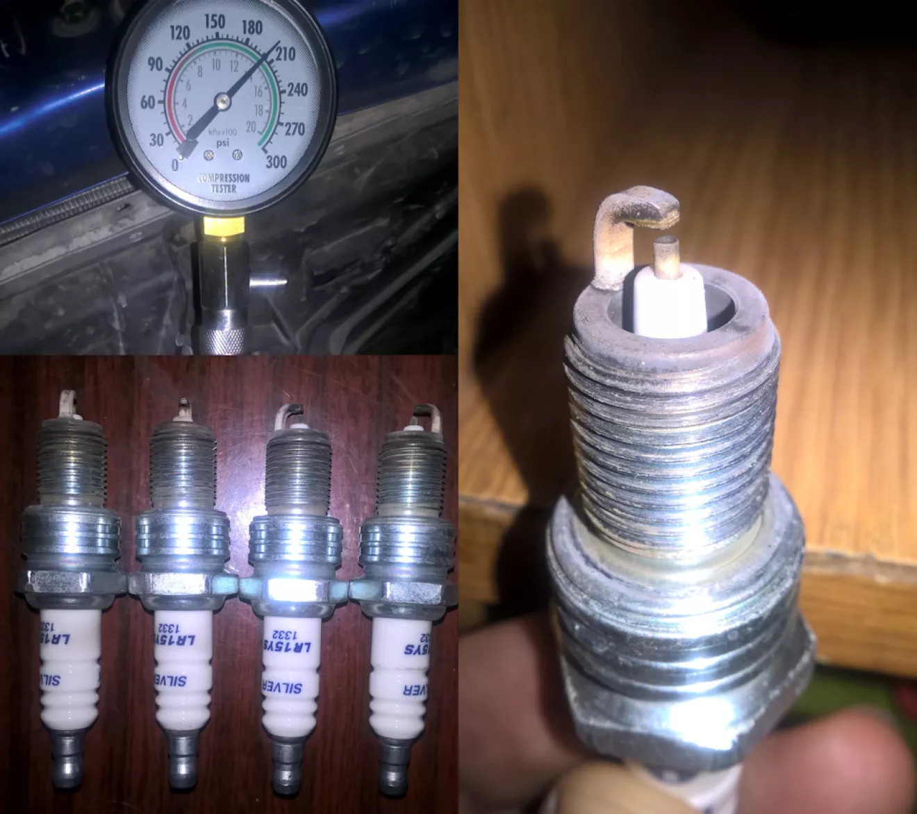 Все сальники на двигателе заменены, прокладка ГБЦ целая (антифриз не уходит, масла в расширительном бачке нет), двигатель работает без нареканий, свечи в нагаре. Перед вскрытием замерил компрессию: