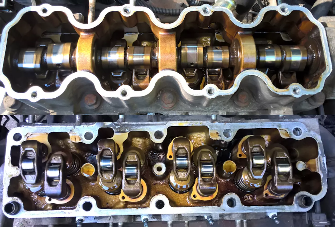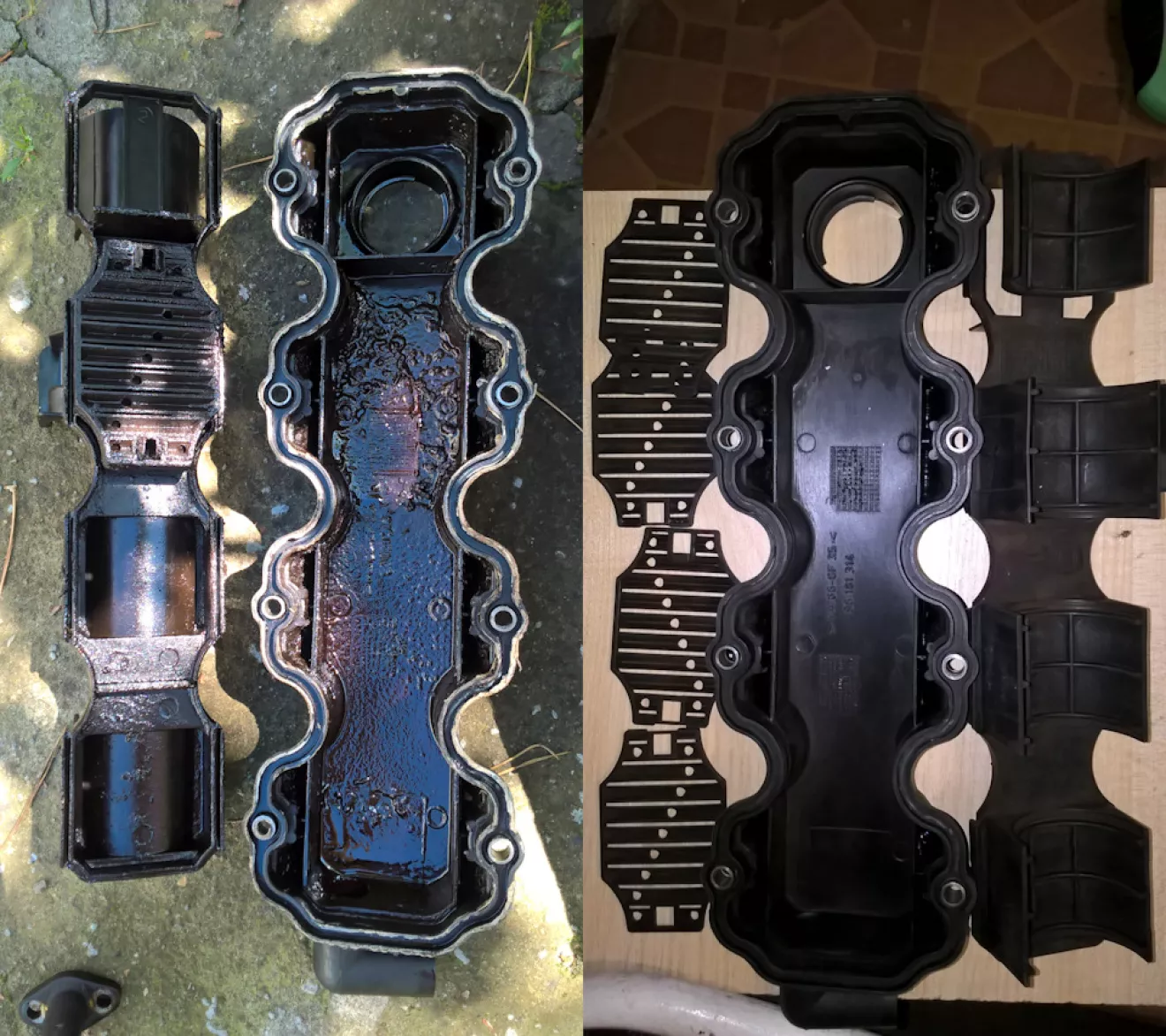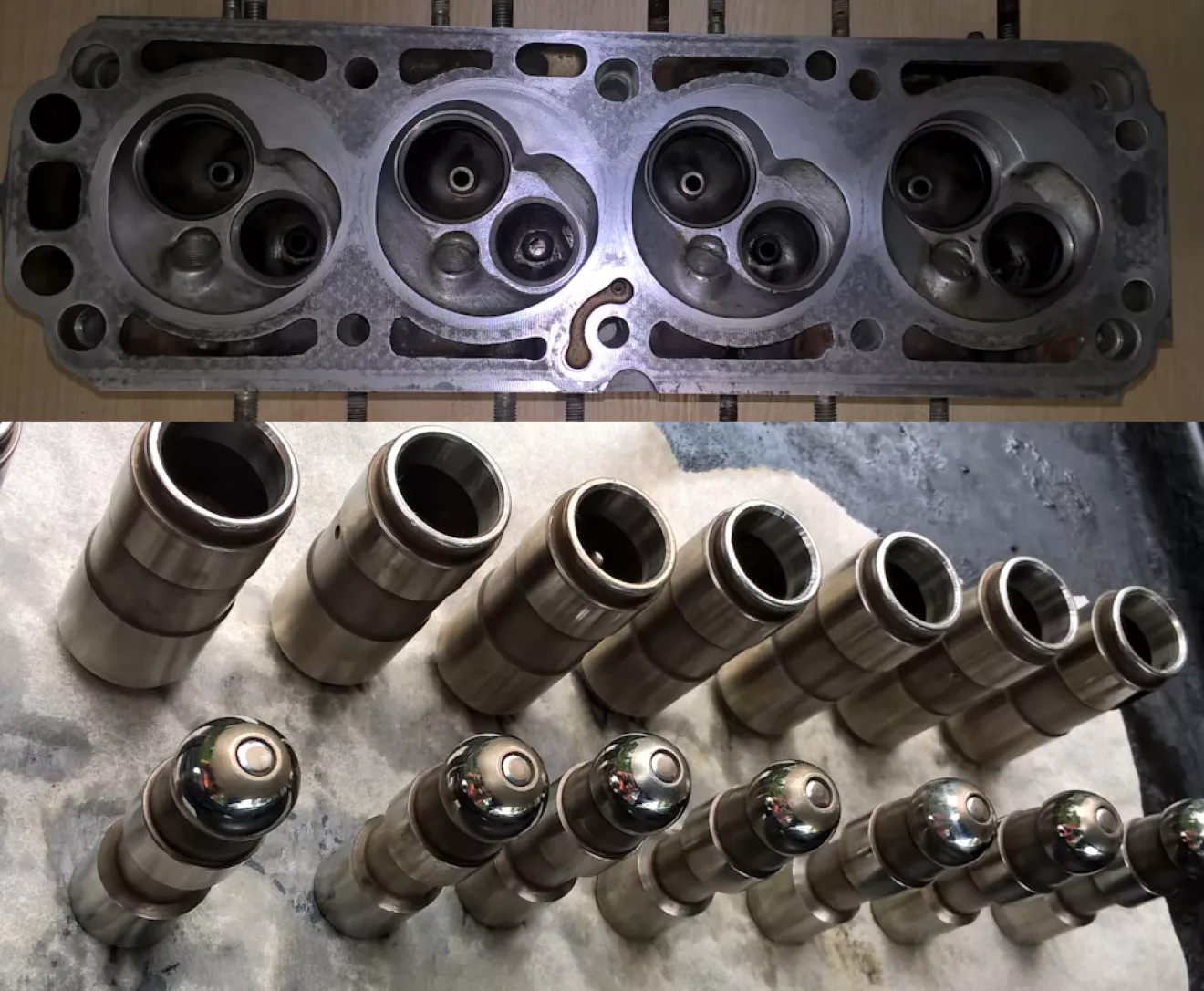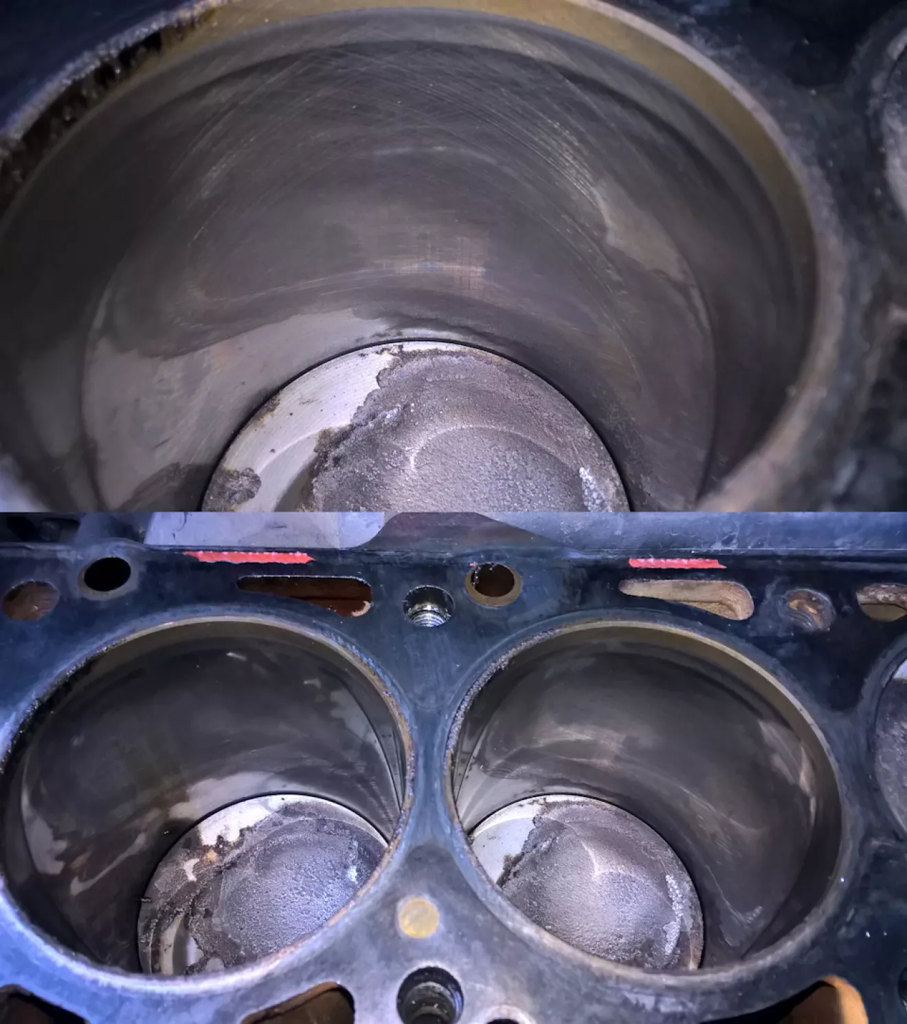 Все сальники на двигателе заменены, прокладка ГБЦ целая (антифриз не уходит, масла в расширительном бачке нет), двигатель работает без нареканий, свечи в нагаре. Перед вскрытием замерил компрессию: