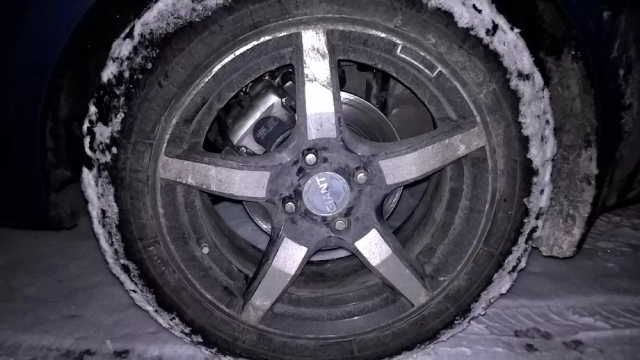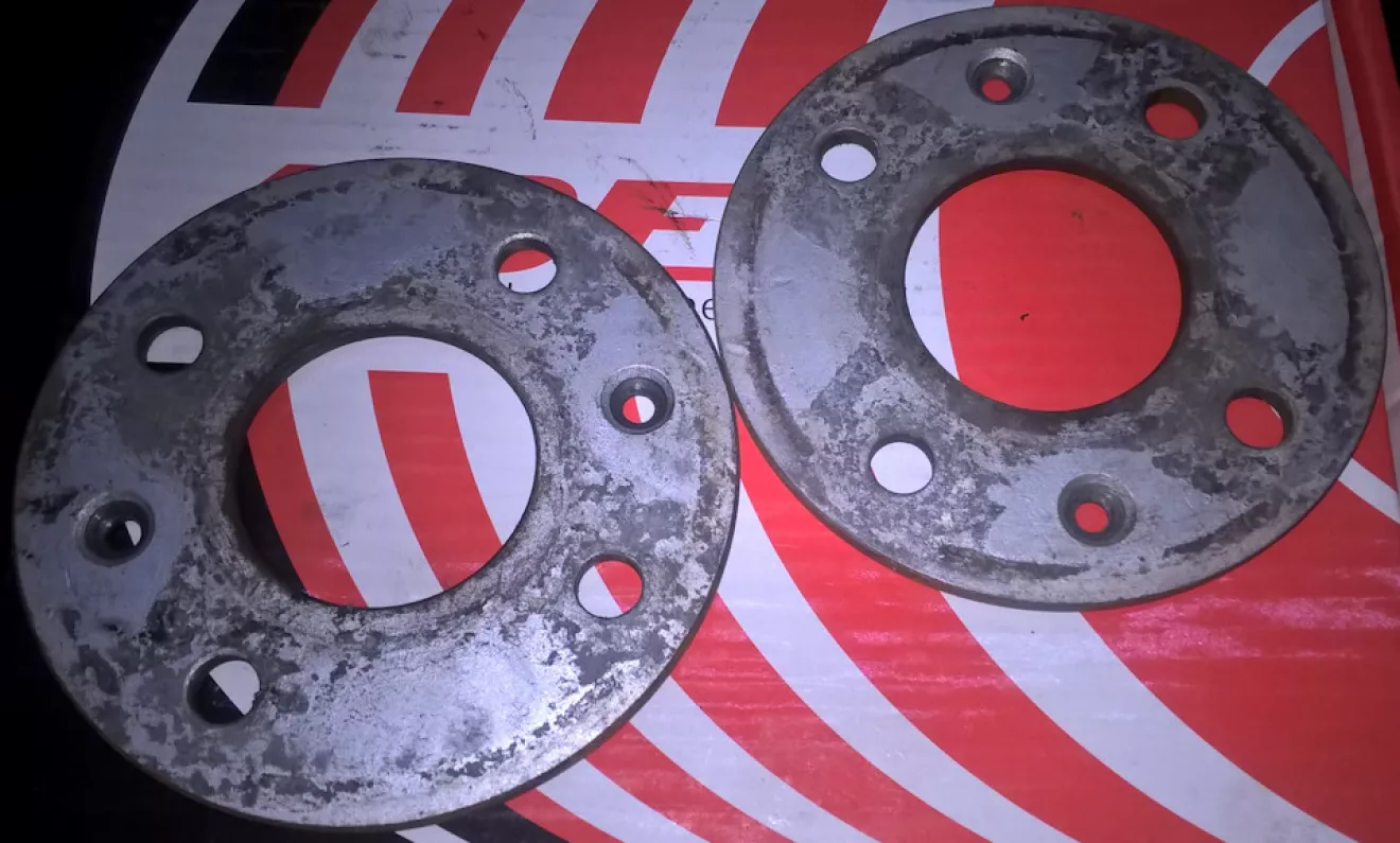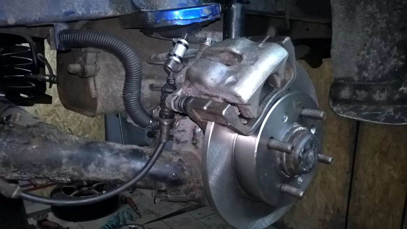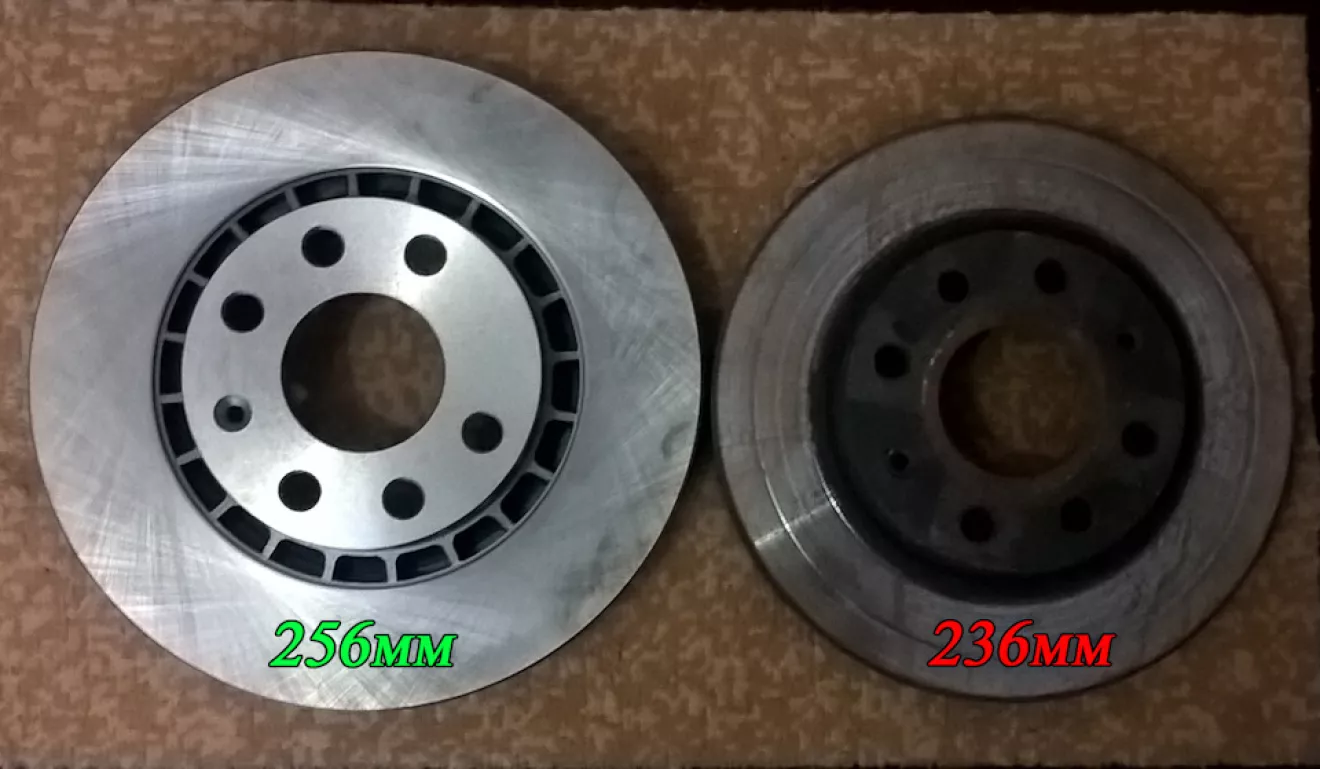 Так как у меня докатка R14 сзади ставится переходник сверху диска (вырезается с старого тормозного барабана), без него цепляет за суппорт, спереди всё нормально.
