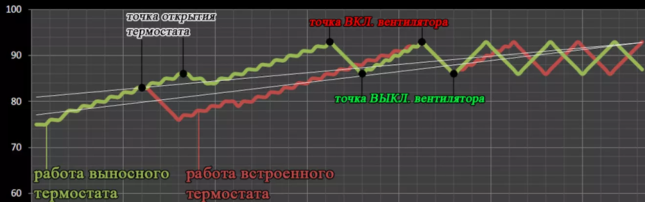 Установил термостат на 92/107°C в штатное место, зимой радиатор закрываю — теперь результатом доволен, летом вентилятор включается как обычно, зимой тепла достаточно, ничего не течёт и не сломается.