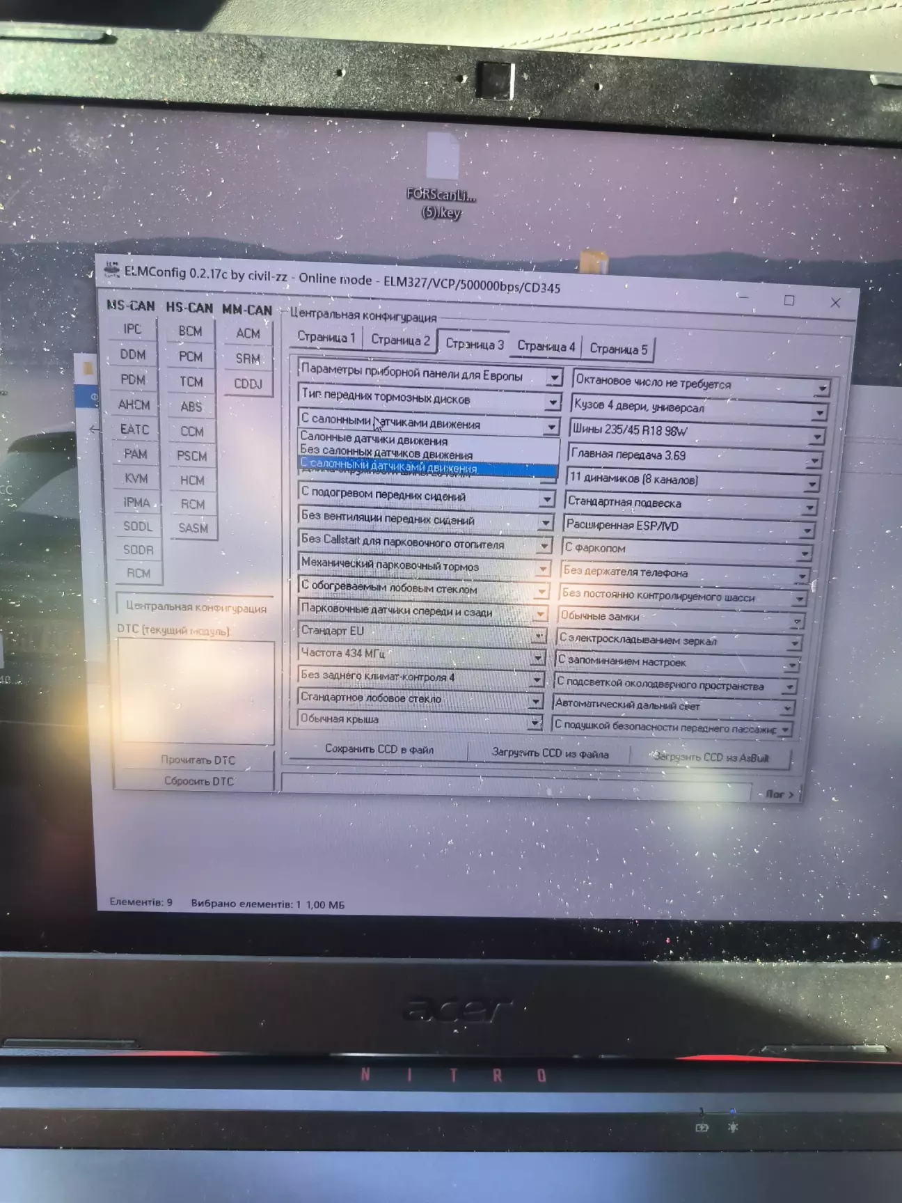 Далі йдемо в ELMconfig змінюємо на (з салоним датчиком руху ) тоді в нас в конверсі зявляється меню сигналізація