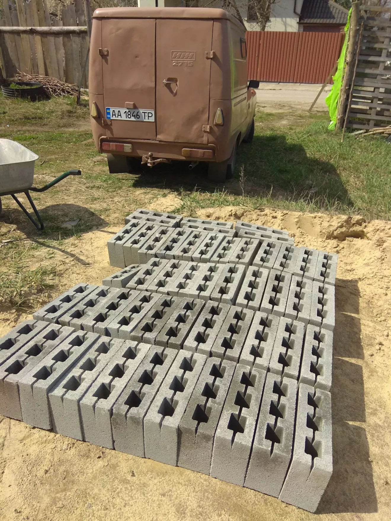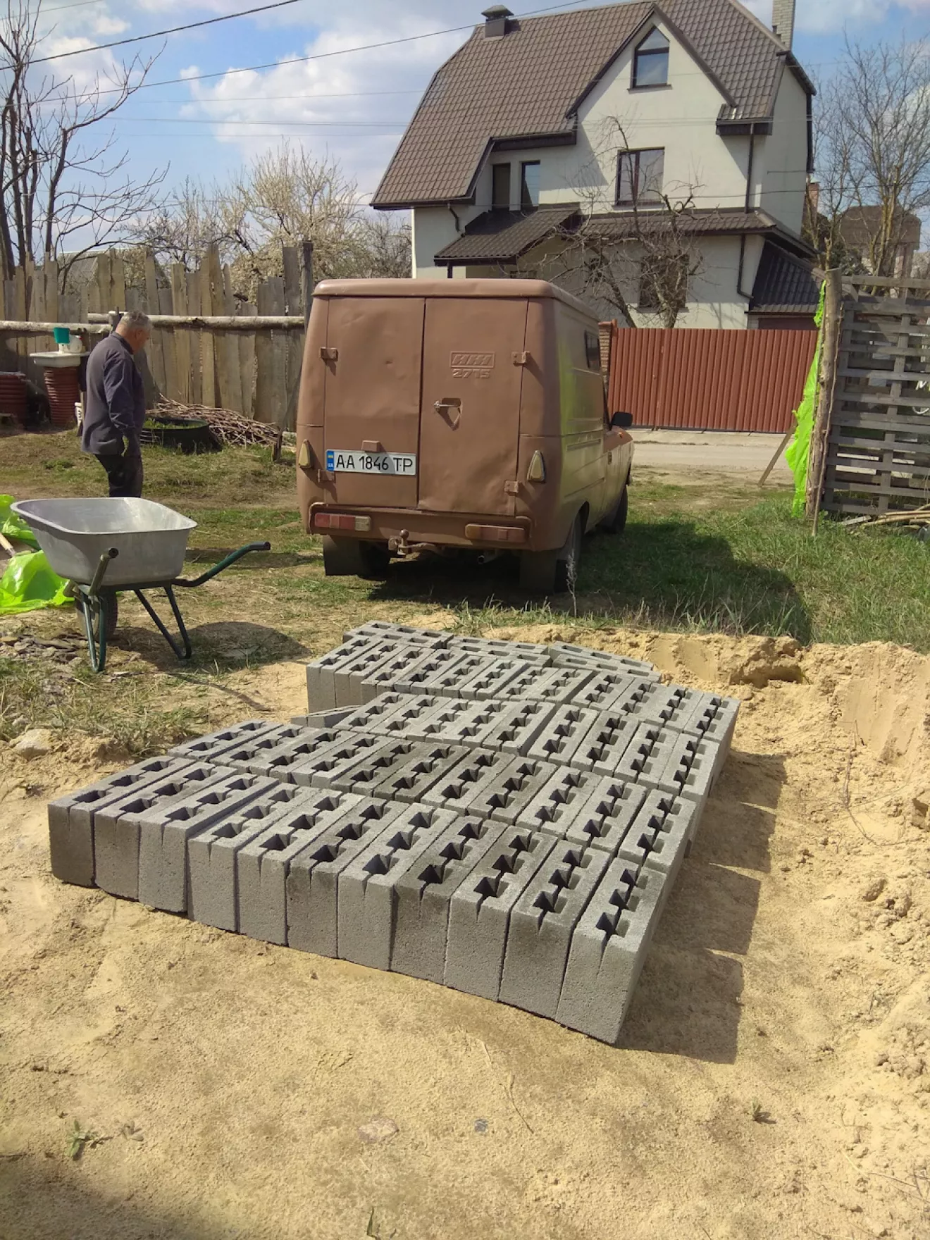 Итак потеплело, пришло время продолжать строительные работы. Остались перегородки в подвале, материал был доставлен с помощью Ишака за четыре ходки всего 230блоков, за раз берет 50 блоков и пассажира. Сын с удовольствием катается со мной, ему даже больше нравится чем другие машины в нашем парке.