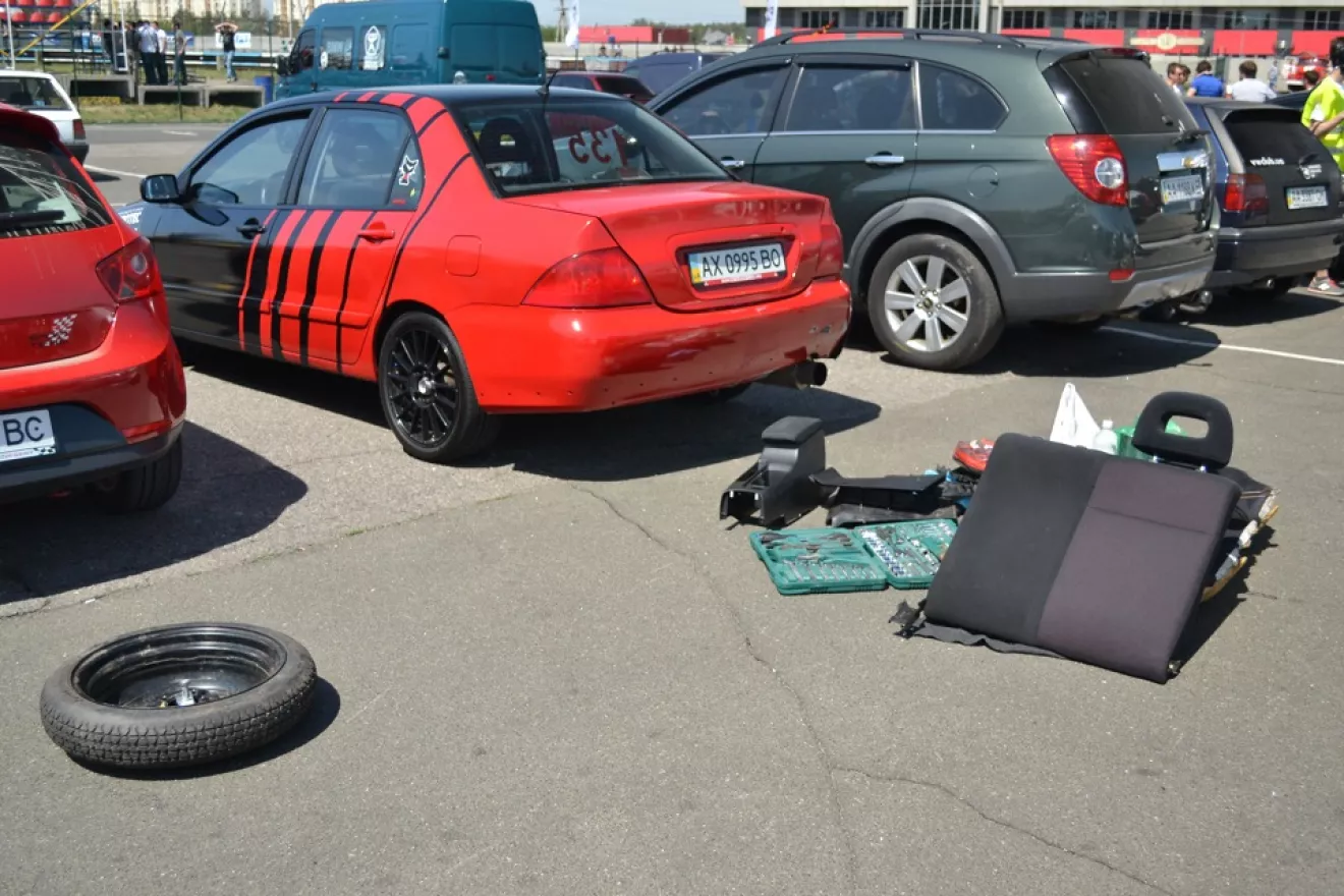 К первому этапу был абсолютно не готов, но любимая скомандовала: "Вали!". Поехал в самом нижнем классе до 130л.с. В субботу были проведены трек-день и техком. Для разминки раз проехал по треку — машина вроде нормально держит траекторию. Техком прошли со второго раза — забыли огнетушитель, а затем гоняли в его поисках по окружной и наспех колхозили крепление.