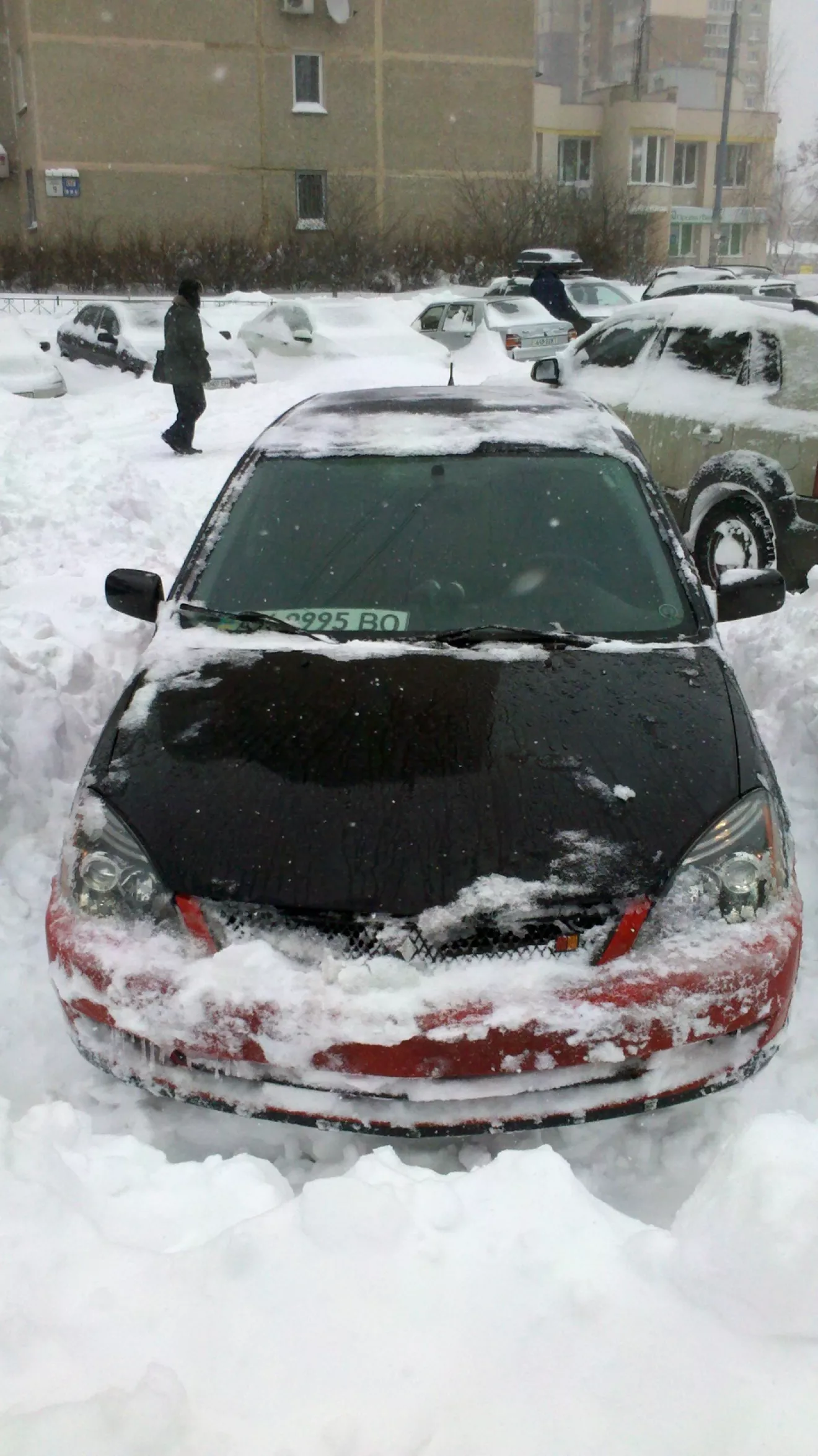 , вместо обычных 20 минут… Ехал на Сеате, а Лансер был обнаружен в виде сугроба… Утром решили размяться, взяли лопату и пошли на раскопки. Два часа трудов и Лансер был откопан заодно и Сеату место расчистили. При этом за день до этого был сухой асфальт.