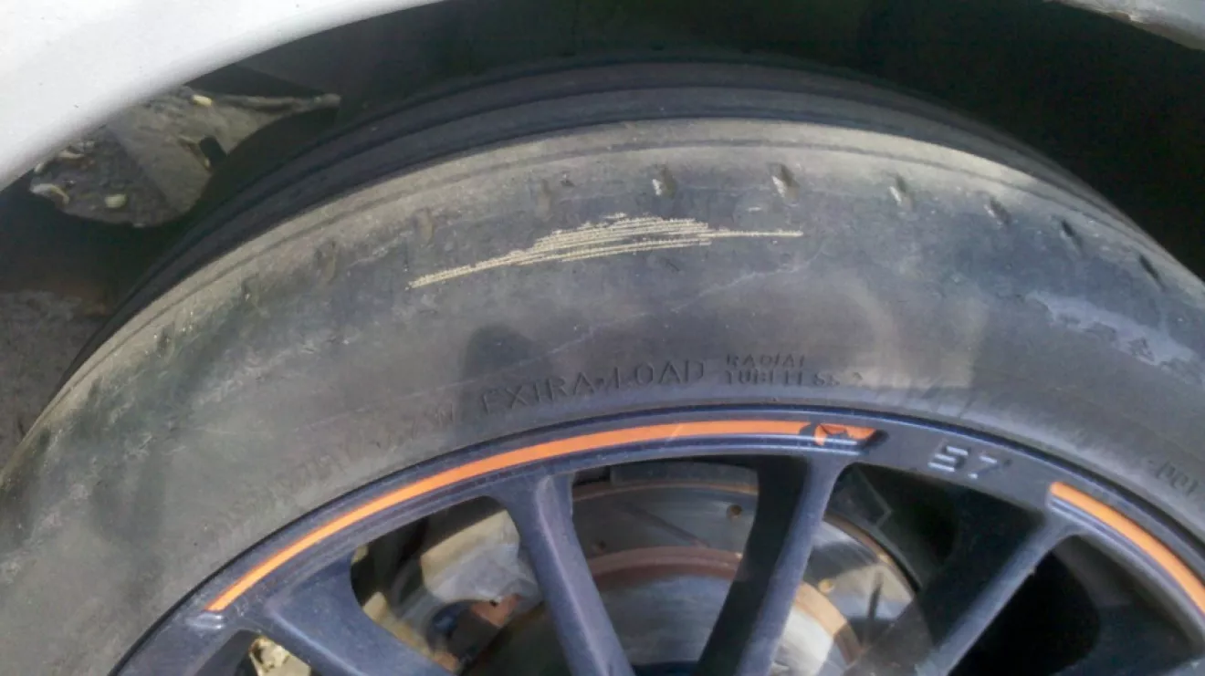 Пока одевали второе колесо, заметил интересную особенность Нокиана — защитный буртик в месте посадки резины на диск — вот почему я без последствий ехал на полностью спущенном колесе.