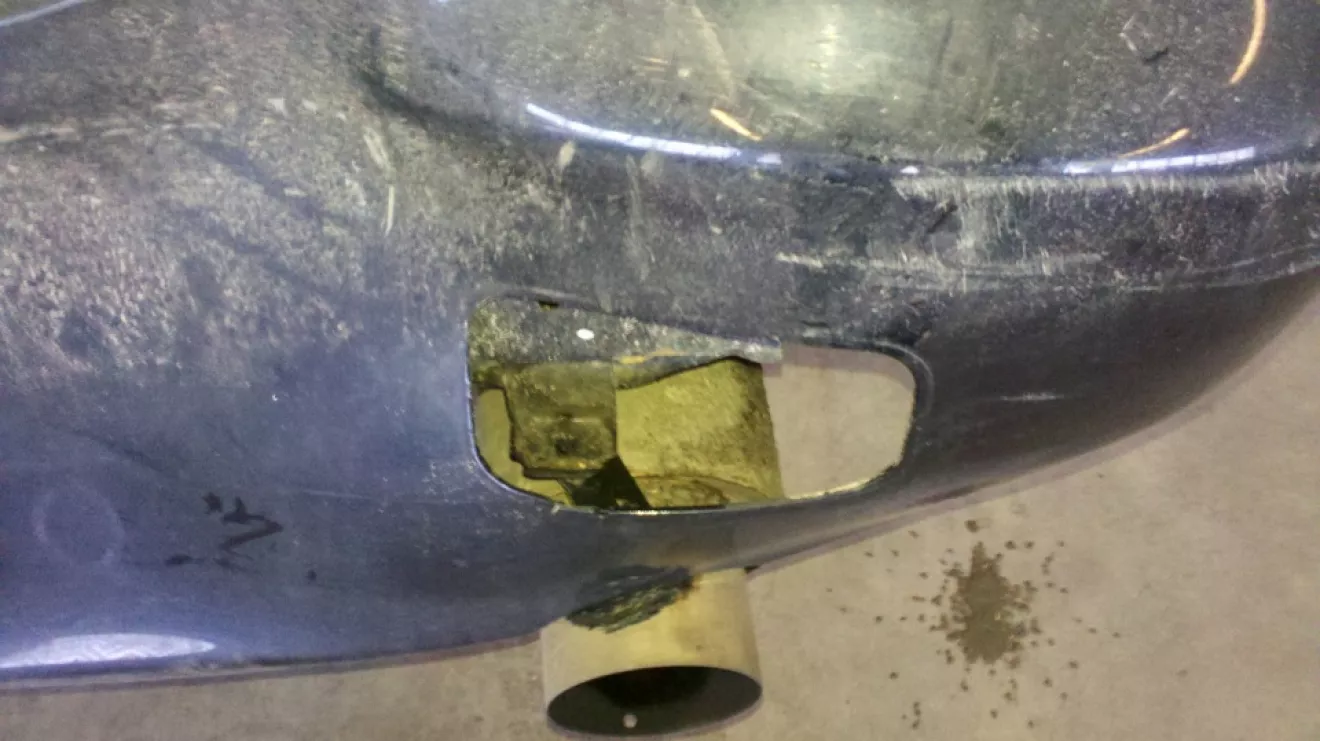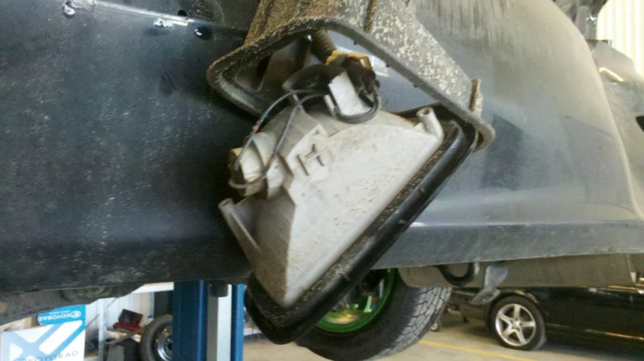 Правая противотуманка куда-то ушла, а бампер приплавился к глушителю