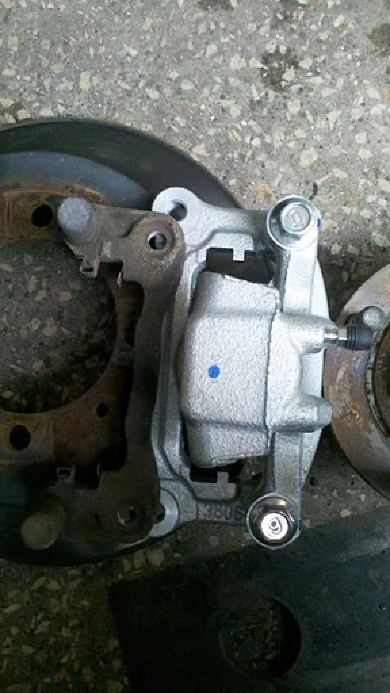 Но когда начали проворачивать диск оказалось что суппорт становится наперекос — положение колодок в скобе и суппорте не совпадает на 3мм — отсюда и перекос. Решили не рисковать и поставили обратно родные суппорта