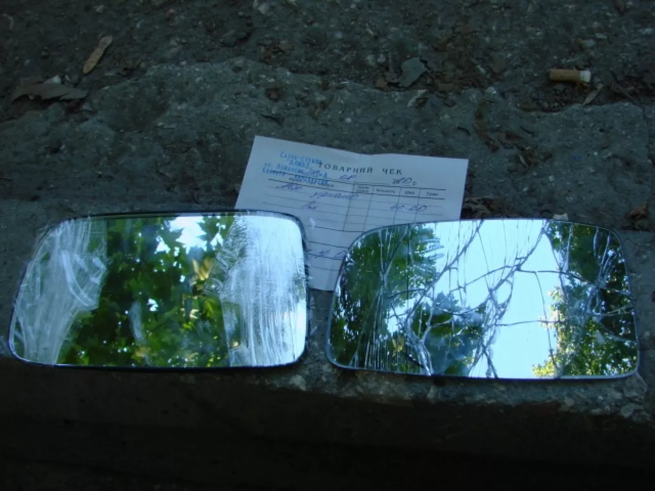 Начинаю прозванивать диллеров — ни у кого в наличии зеркала нет, перестраиваться с такой мозайкой вместо зеркала очень страшно… Прикидываю что придется пилить домой 900км без зеркала… Спасибо Андрею из Севастополя за помощь! Провел меня на следующий день на Стелорезку где мне за пару часов вырезали и вклеили новое стеклышко, правда плоское и без подогрева, но все равно лучше чем ничего.