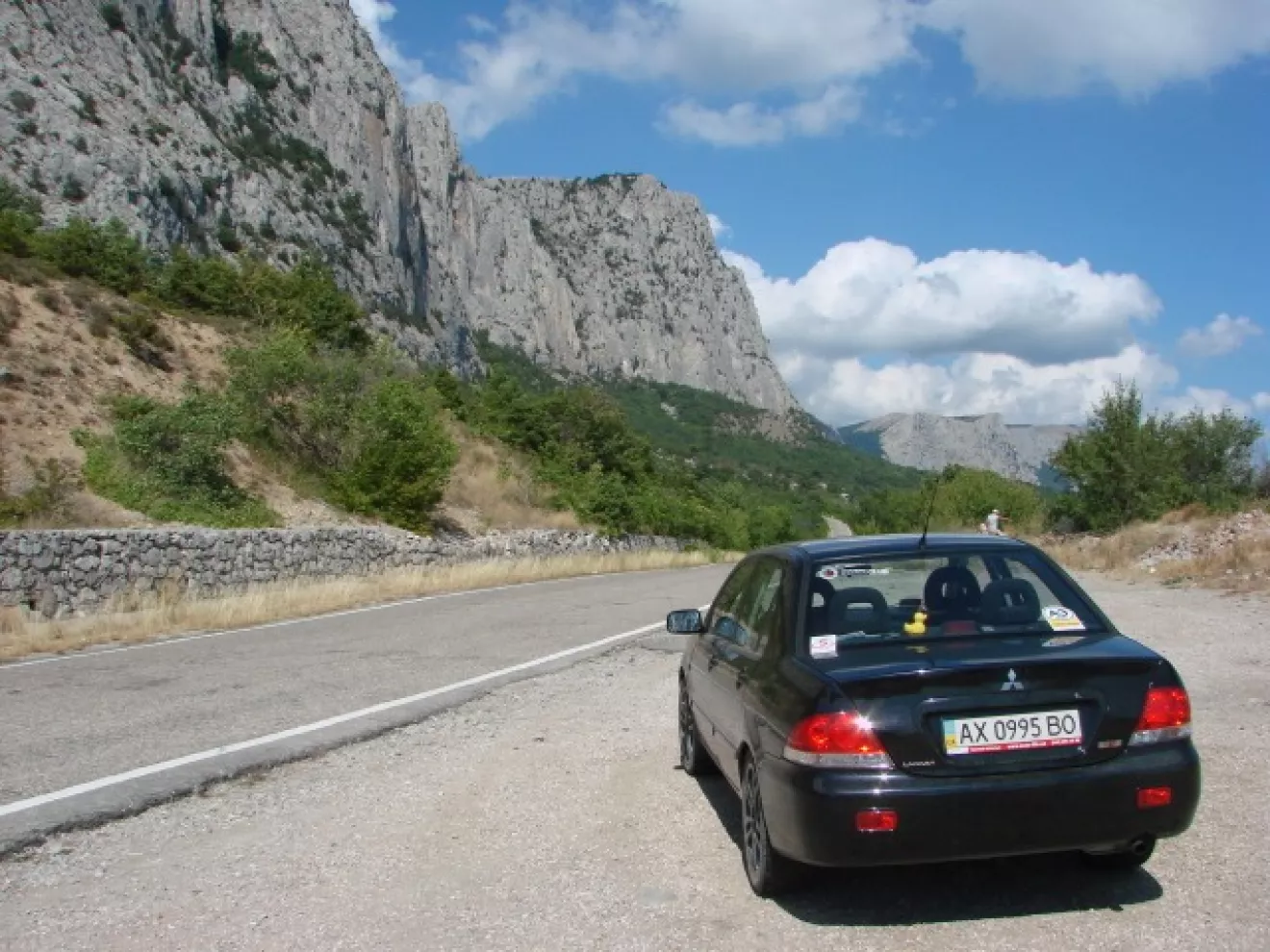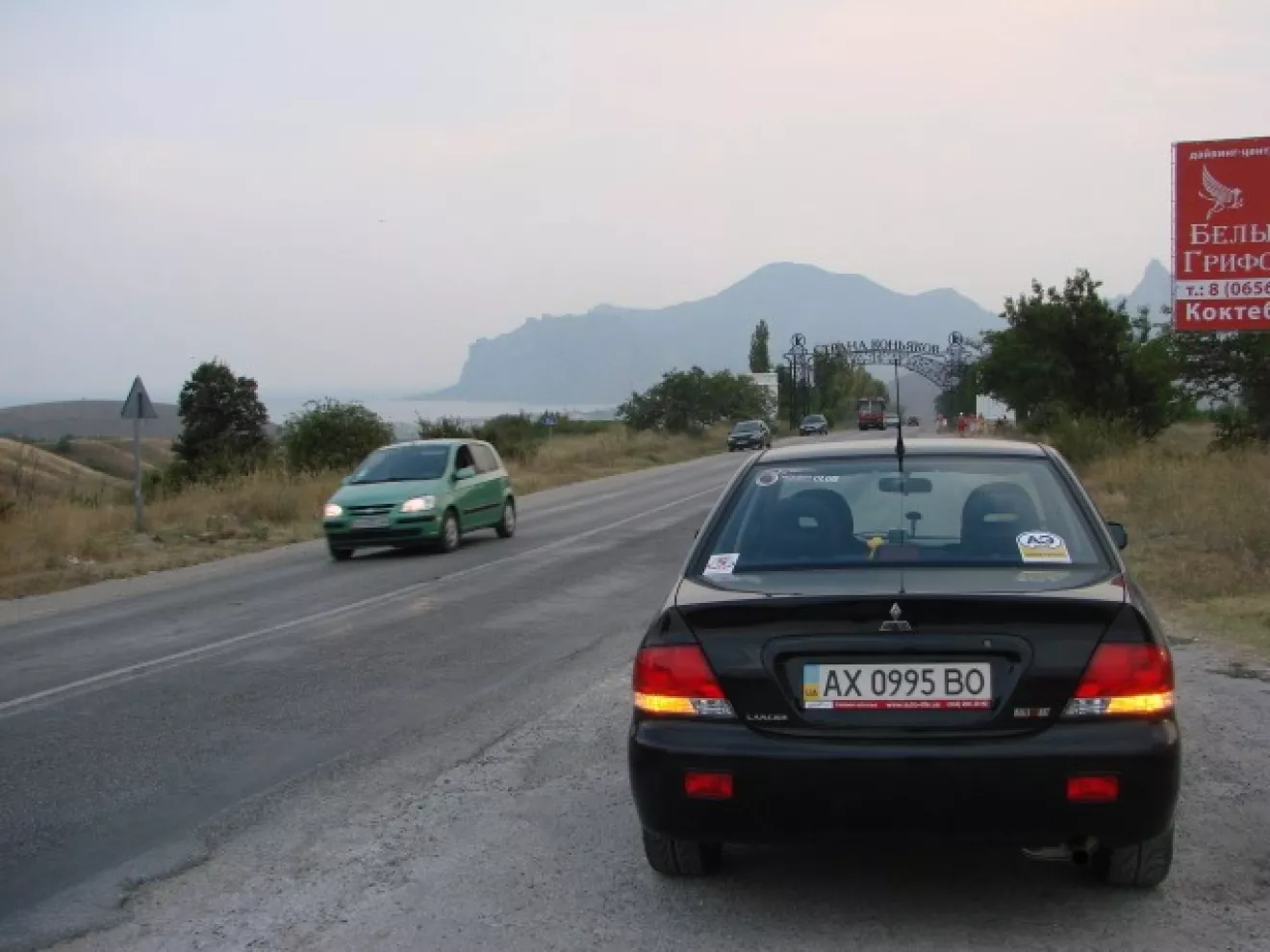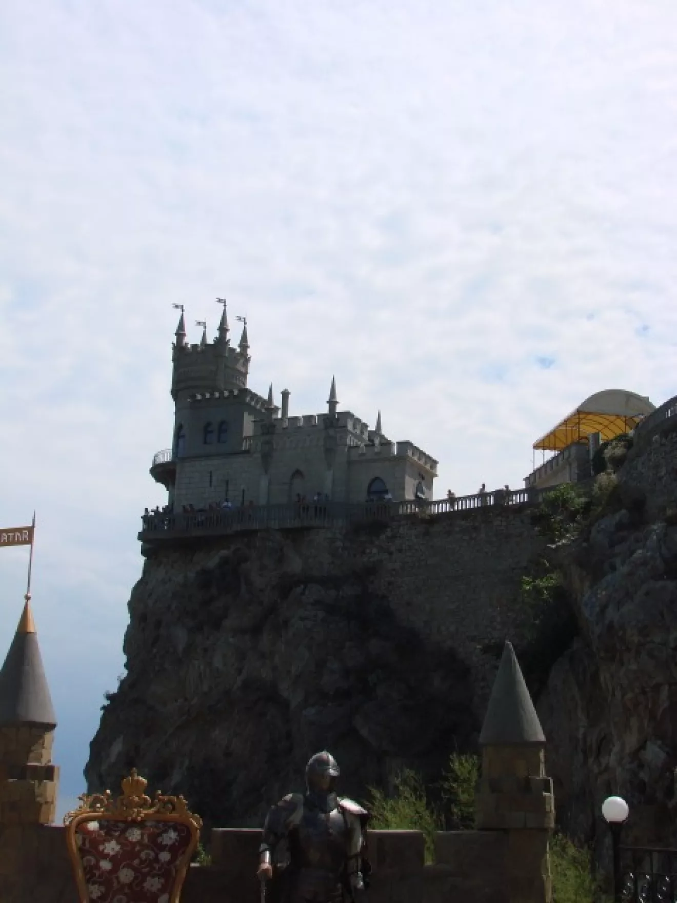 Далее идеи меня покинули и я просто решил ехать по побережью… В Морском первый раз в жизни подобрал голосующих автостопщиков. Оказались студенты-художники из Харькова. Были очень удивлены моим одиночным путешествием. Предложили приехать к ним в лагерь под Гурзуфом. Там я еще не разу не был так что не отказался. Вечером был вкусный супчик и чай на костре, ночное купание и сон на пляже под звездами. Утром же меня снова потянуло за руль и я двинулся в сторону Ялты. Сама Ялта уже давно изучена, а вот в Ласточкином гнезде не был ни разу. Решил исправить! По пути лишился зеркала… :((( Но цель все равно была достигнута! Я там был!