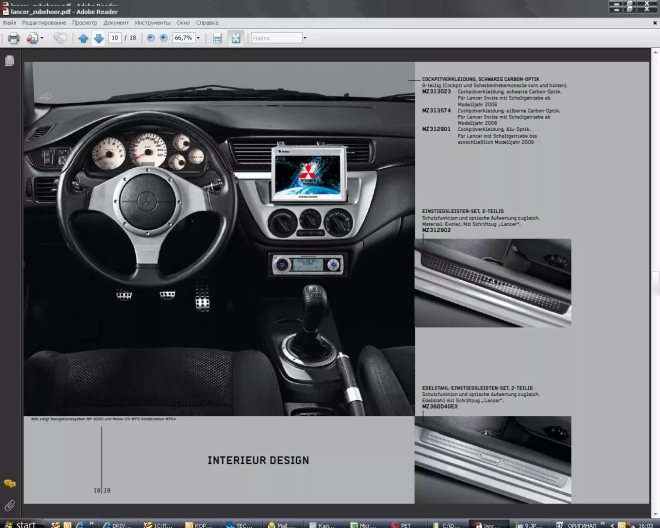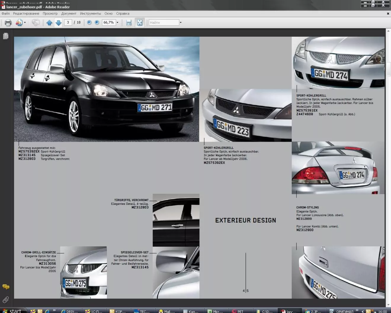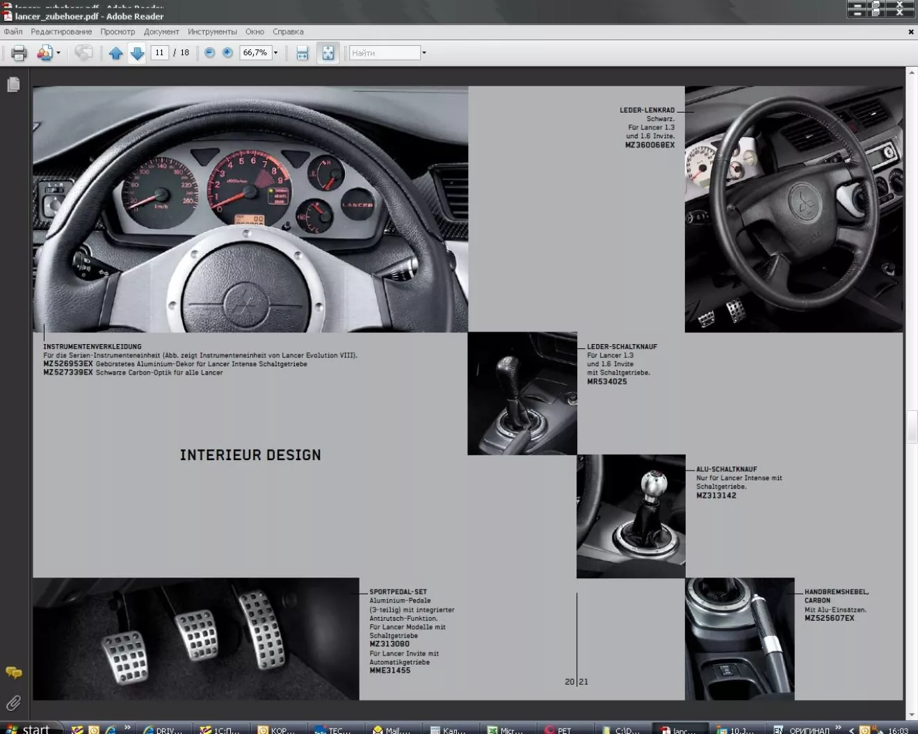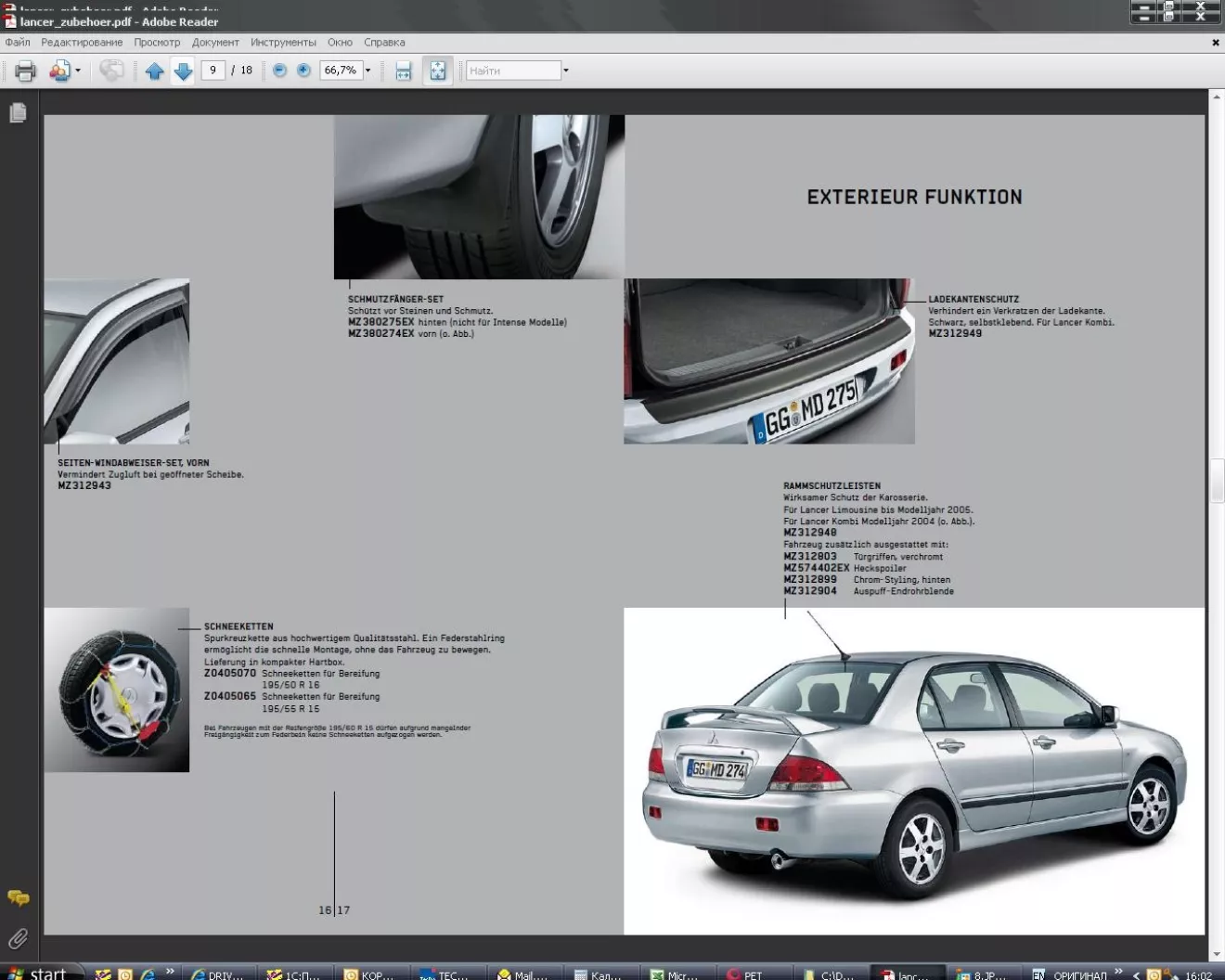 Каталог оригинальных аксессуаров на Лансер IX из Дойтчляндии