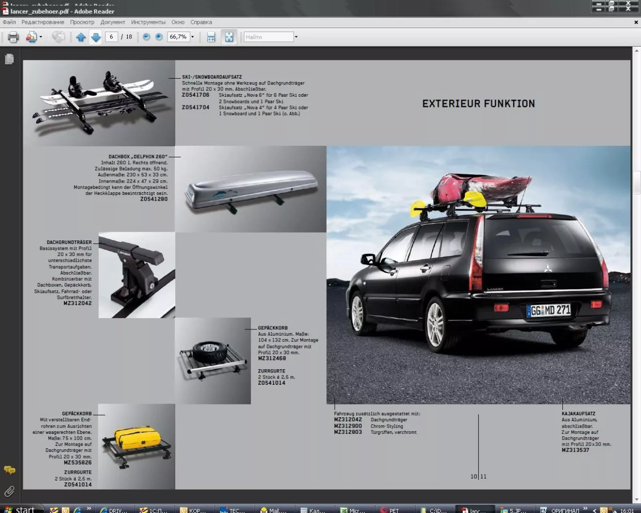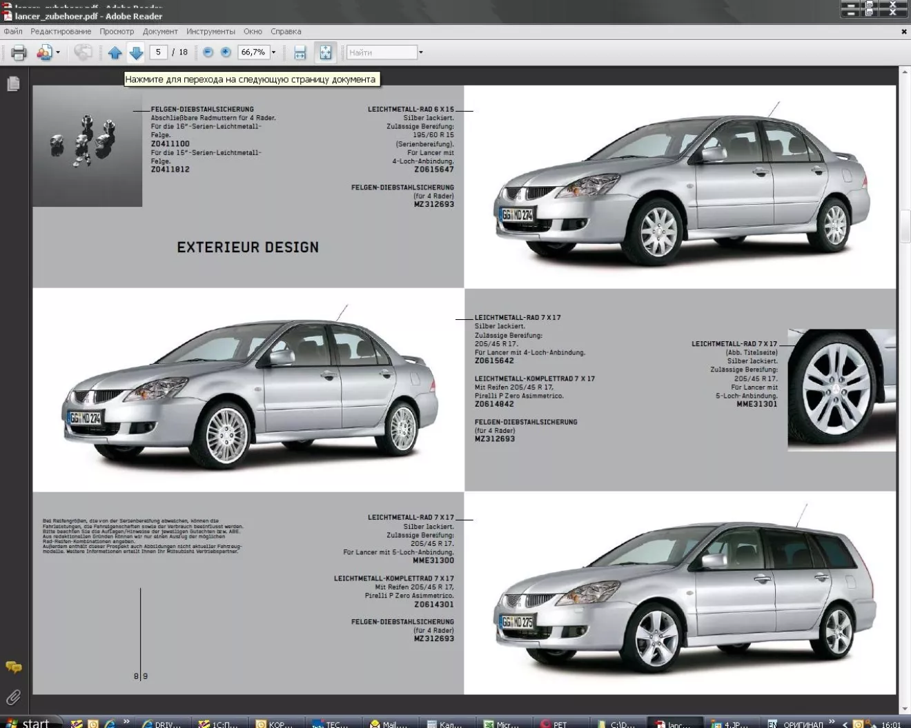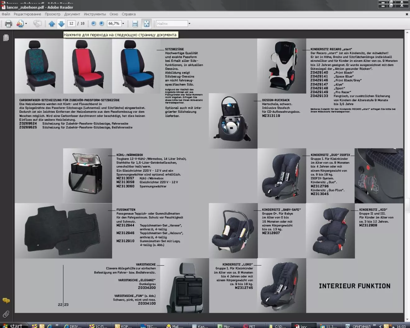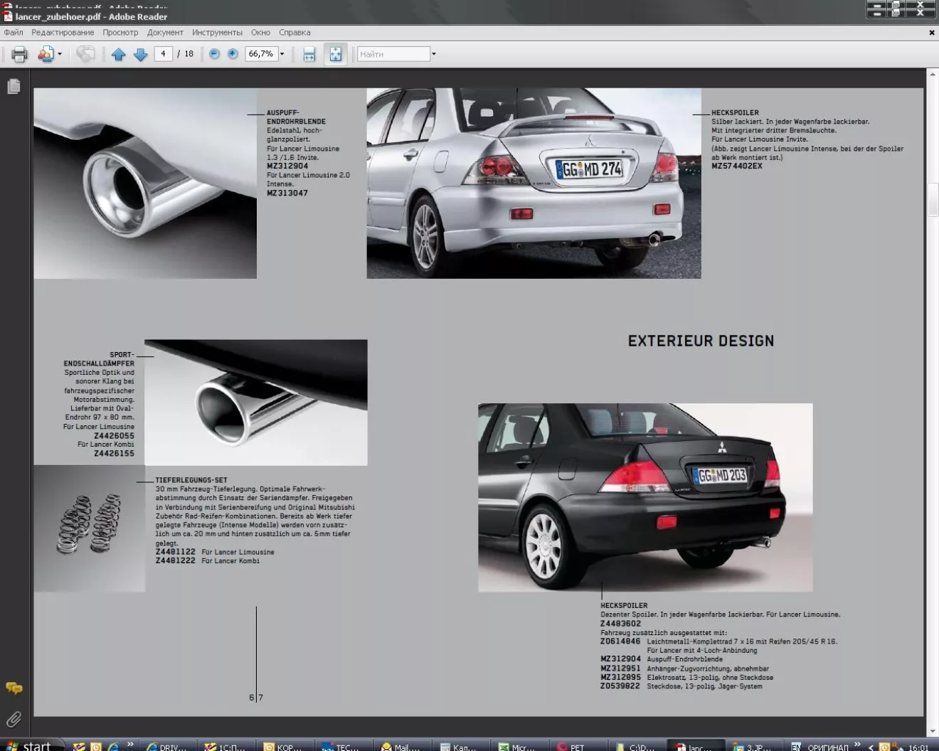 Каталог оригинальных аксессуаров на Лансер IX из Дойтчляндии