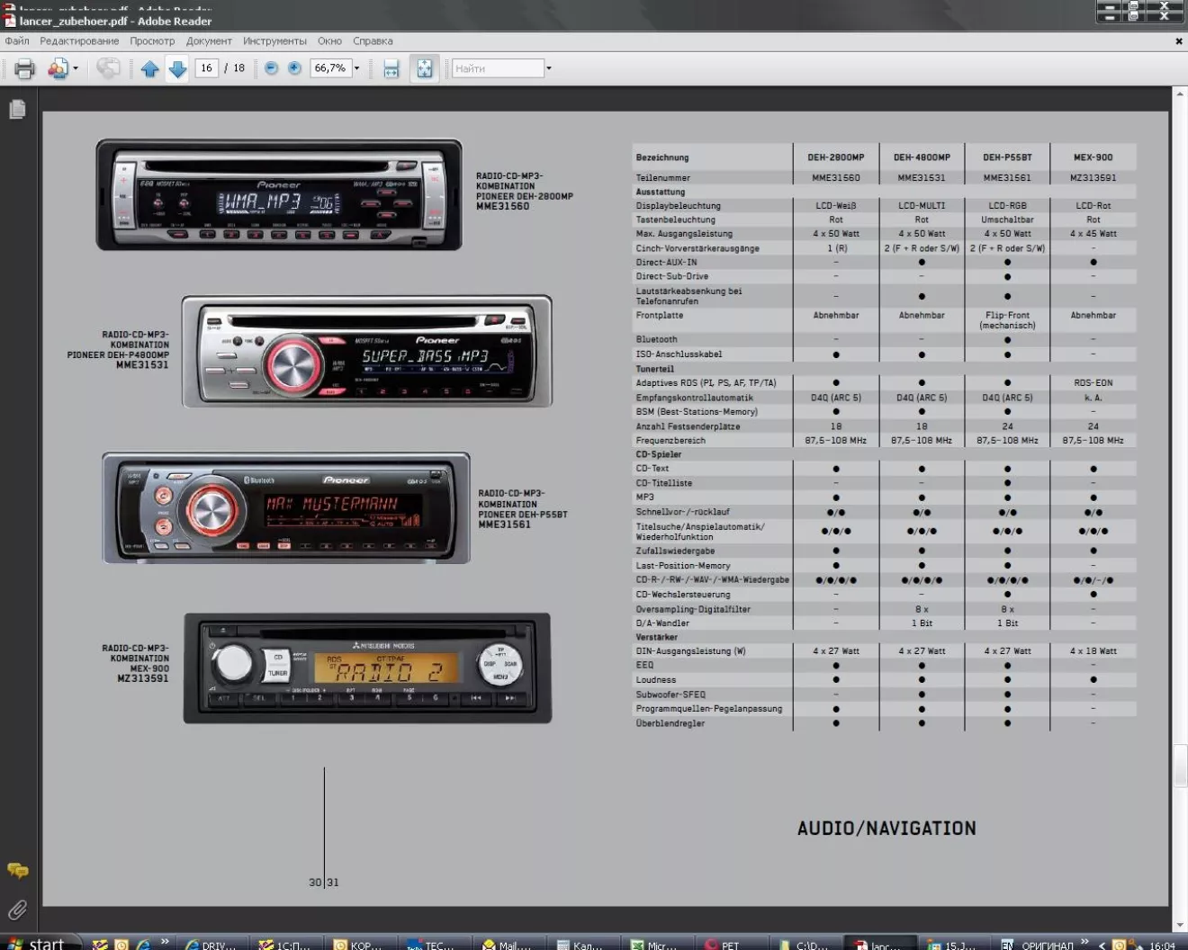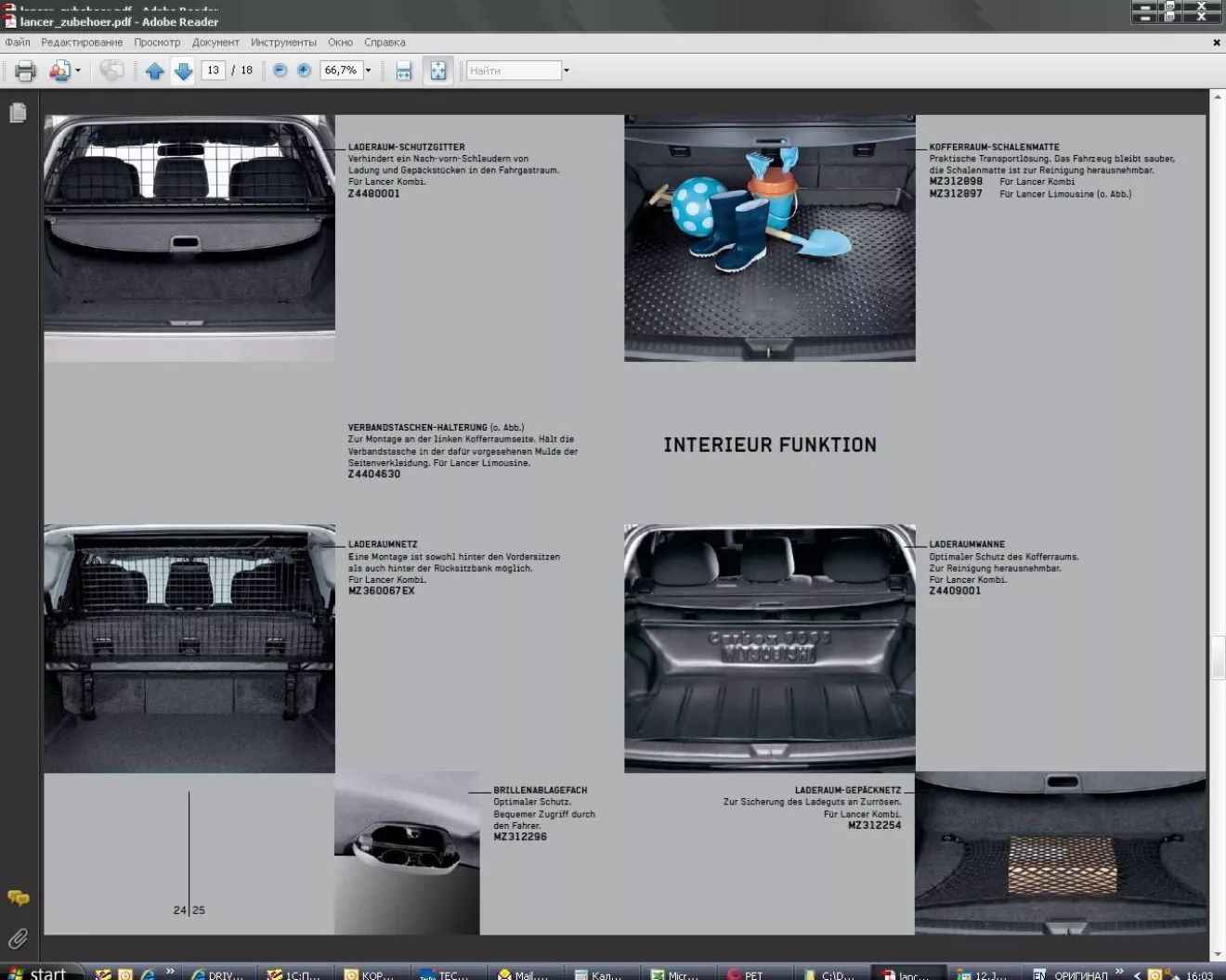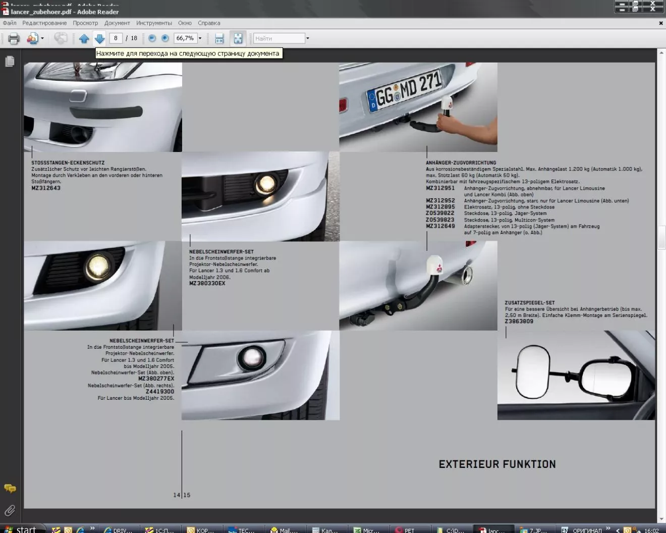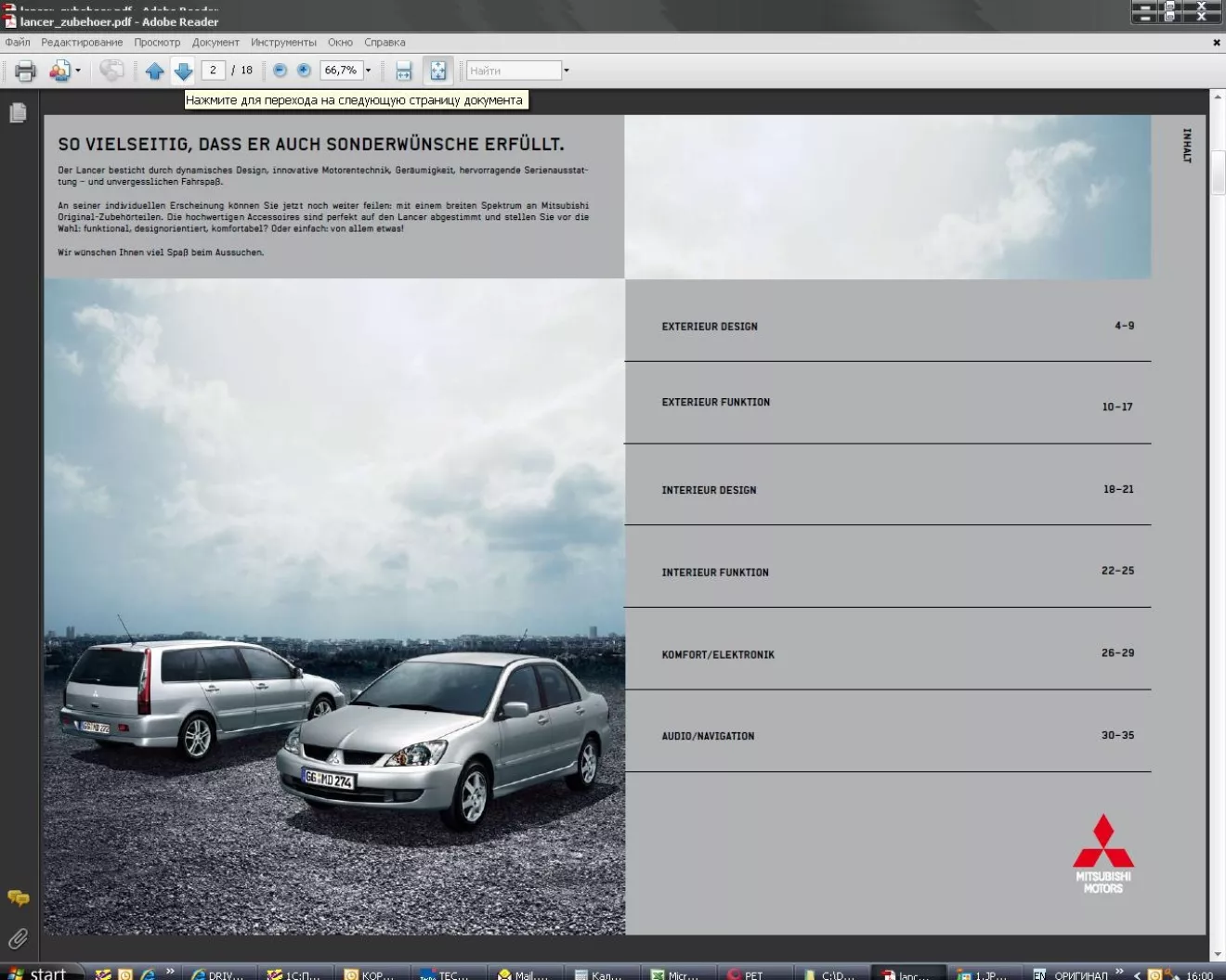 Каталог оригинальных аксессуаров на Лансер IX из Дойтчляндии