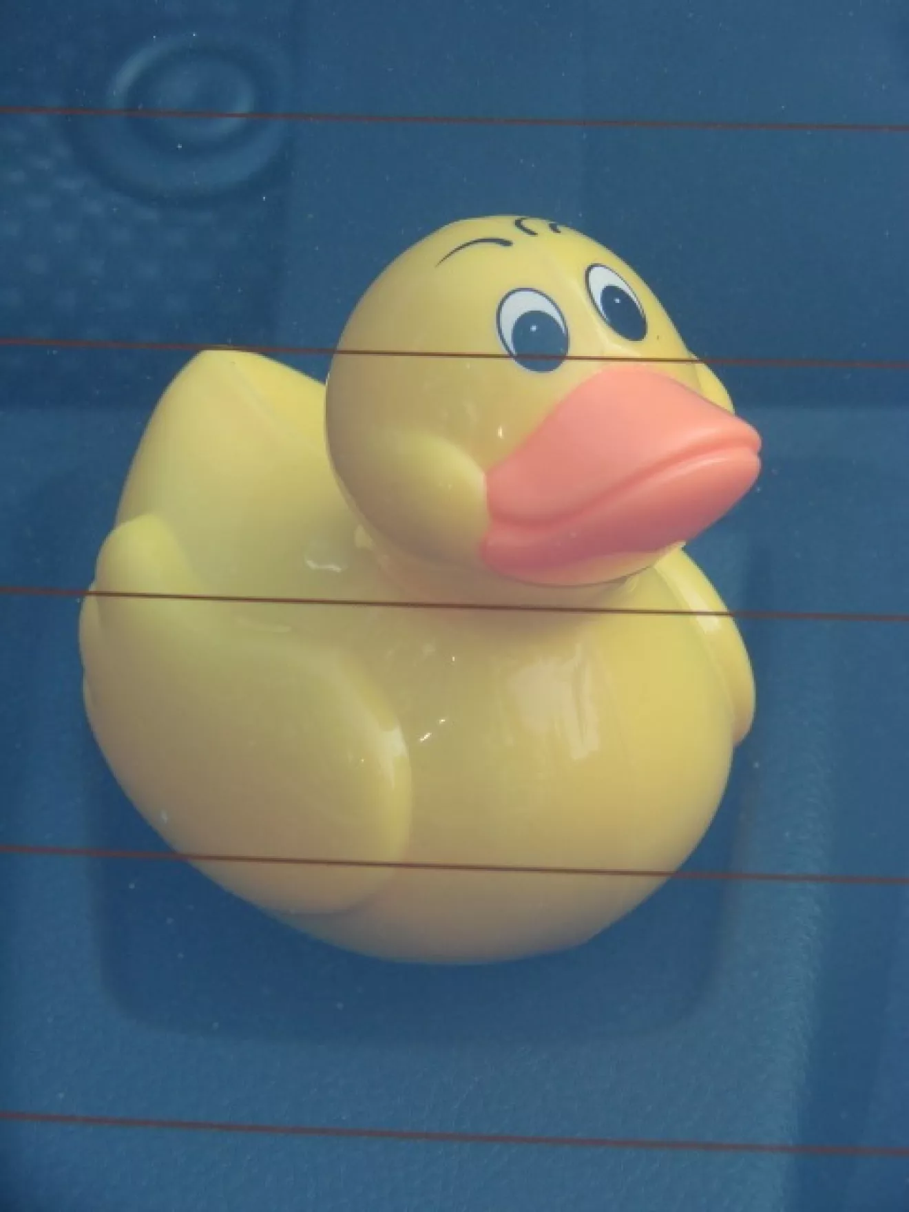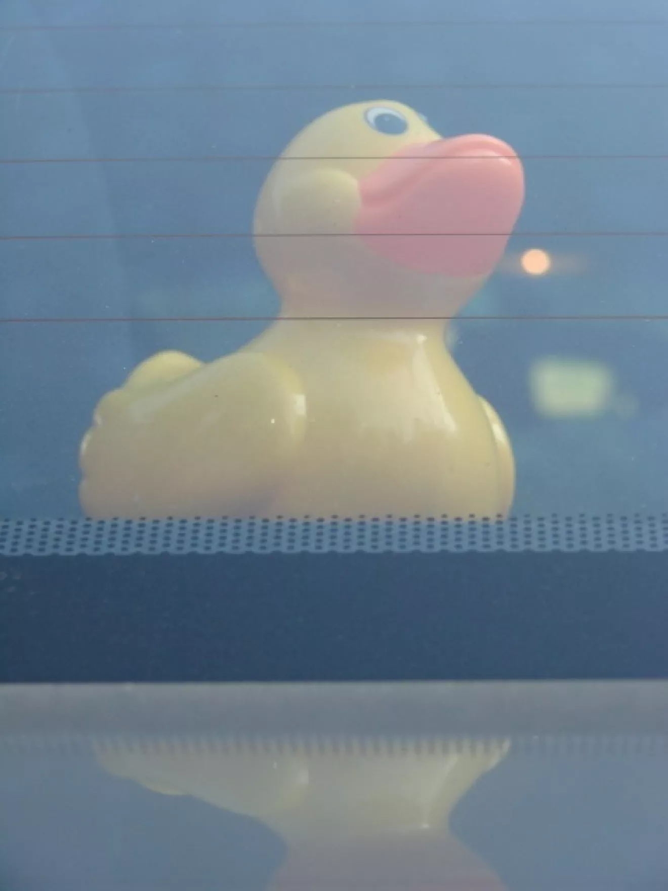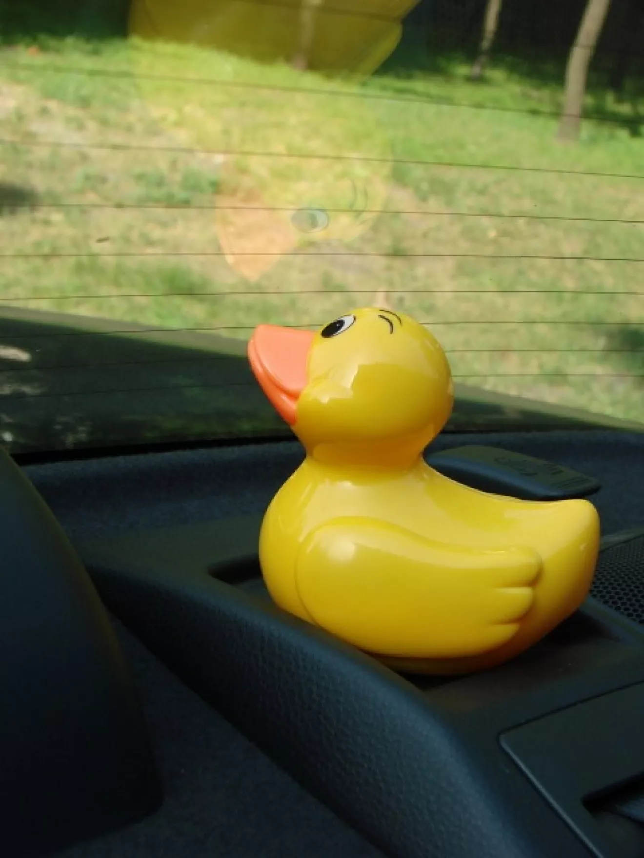 Решили мы со зверенышем как следует попариться в баньке, примапарафетить себя так сказать чтобы в люди не стыдно было выехать. Проговорились мы об этом чудестной девушке Вике G_inger, а она нам: "А уточку для купания вы взяли?". А у нас такого девайса отродясь небыло :((( Благодаря Вике Звереныш и Уткин стали жить вместе. Но это еще не все! Едем мы значит все чистенькие-блестященькие, шумим вовсю сабом. Останавливаемся на перекрестке, бросаю взгляд в салонное зеркало, а там — Уткин на задней полке вовсю пляшет! :))))) Такого заряда позитива я давно не получал! Едем сегодня, шумим как всегда :))) За нами останавливается растюнгованая БМВ Е30. Парень явно думает нас сейчас порвать как Тузик грелку, всматривается и видит Уткина пляшущего под стеклом! Про порвать чувак сразу забыл! Хохотал от души! Вот такой у нас позитифффный пассажир появился!