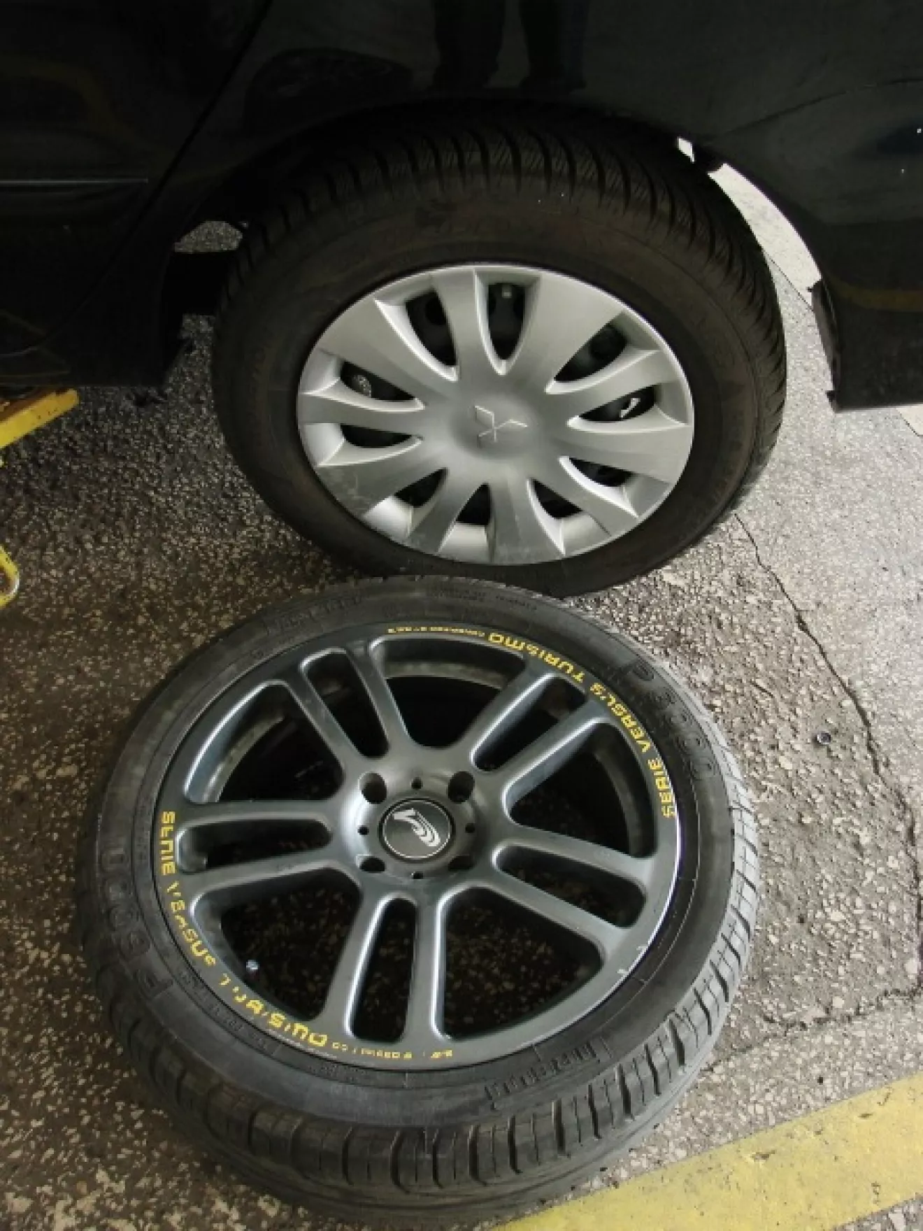 Наши предыдущие "белые тапочки" пали жертвой ДТП, а "железяки" на лето ставить совсем не гламурно :))) Начал подыскивать колесики. Долго искал R16 ковку… Потом начали проскакивать мысли о R17… В результате было решено ехать и мерять вживую. Респект и уважуха Alessandrof за предоставленную для опытов машину! В результате примерки мнения разделились: Сане понравились белые Volk Racing R17 и Hokuto R16, а я примерил Rays Versus Turismo Spada и влюбился в них! В результате они были завернуты и презентованы Лапусику :))) Так мы стали Зверенышем :)))