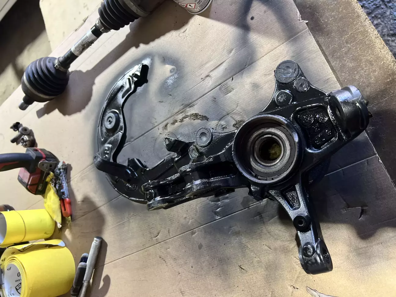 В ході демонтажу шарової вирішив зняти повністю поворотний кулак, перепакувати та перемазати на майбутнє всі болтові з'єднання, почистити та підкрасити місця корозії. Основні проблеми з якими стикнувся - це демонтаж датчику ABS та шруса зі сторони ступиці, все поприкіпало іржею. Волога, для ходової ще той ворог.