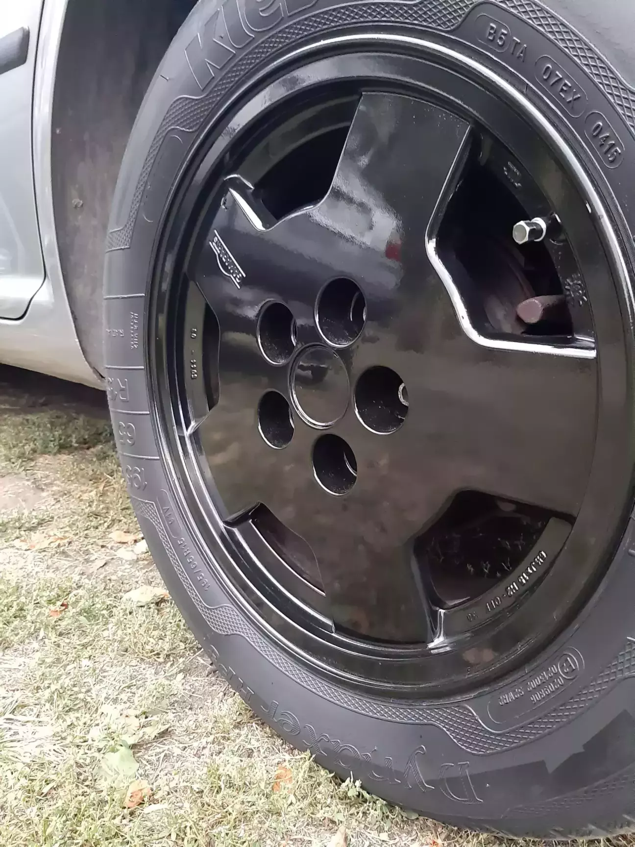 Хотілося побачити який вигляд матиме авто з чорними дисками. Фарбував у чорний глянець. Мої диски покриті порошковою фарбою і структура на моїх "5-спицевих кругах до мотокоси" виглядає не зовсім круто. Тому як не старайся - дзеркала не вийде. Треба полірувати походу. Але я був задоволений результатом.
