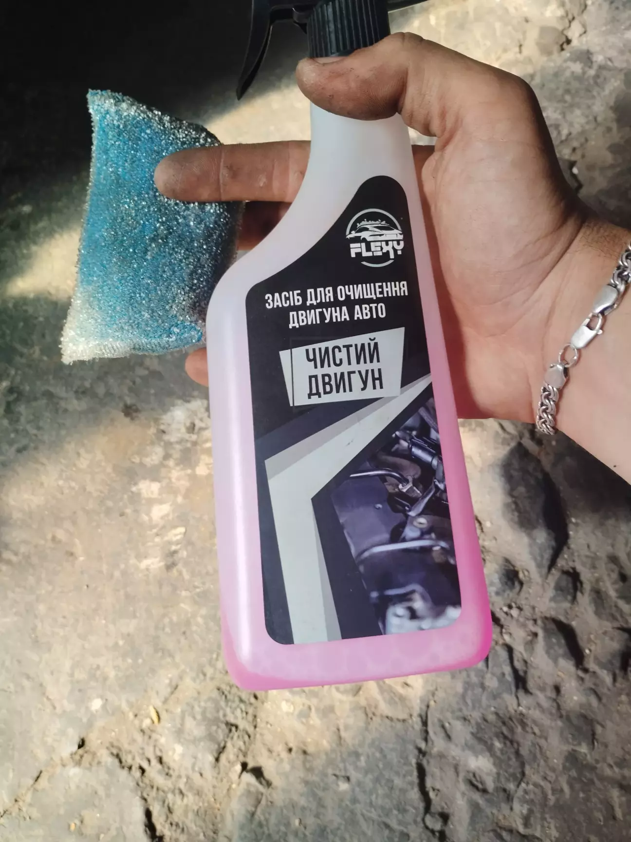 Далі взяв в аврорі засіб чистий двигун і таку мочалку, напшикуємо і відразу починаємо без ніяких зуссиль просто стерати хромове напилення, під яким буде чудовий глибокий, чорний, глянцевий колір, часу займало хвилин 15👇