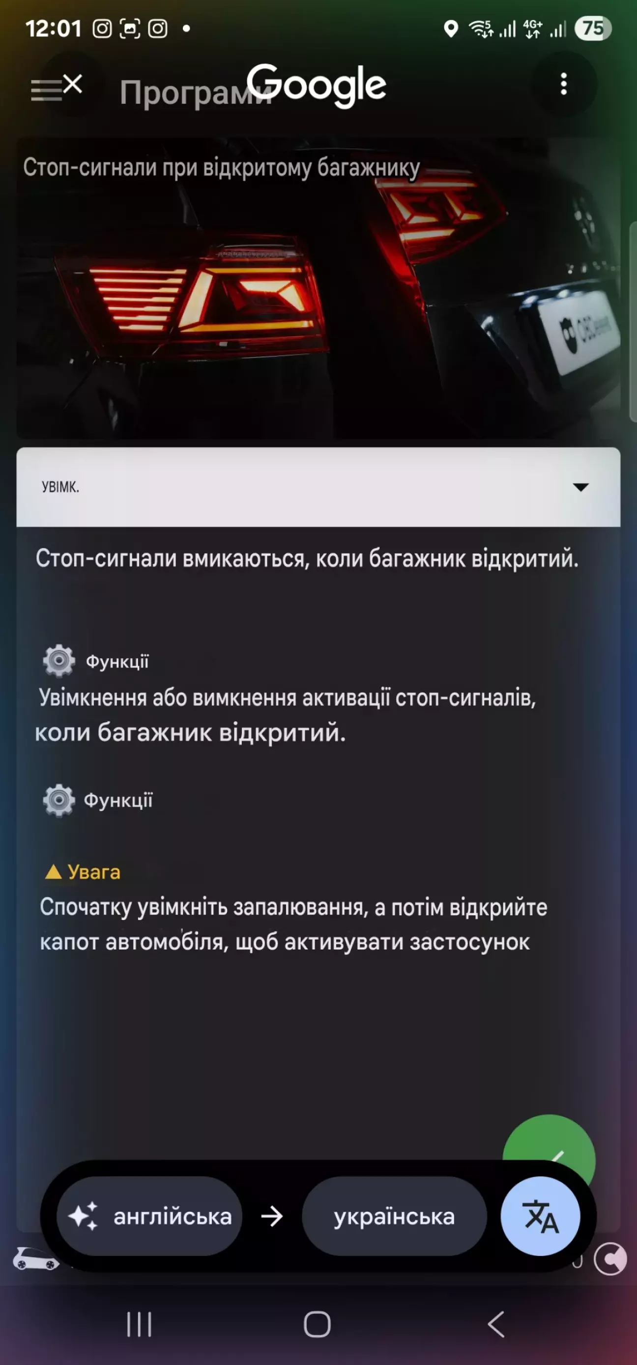 4.увімкнув стопсигнали при відкритті кр шки багажника. З опису, працює якщо увімкннене запалювання. Корисність під питанням.