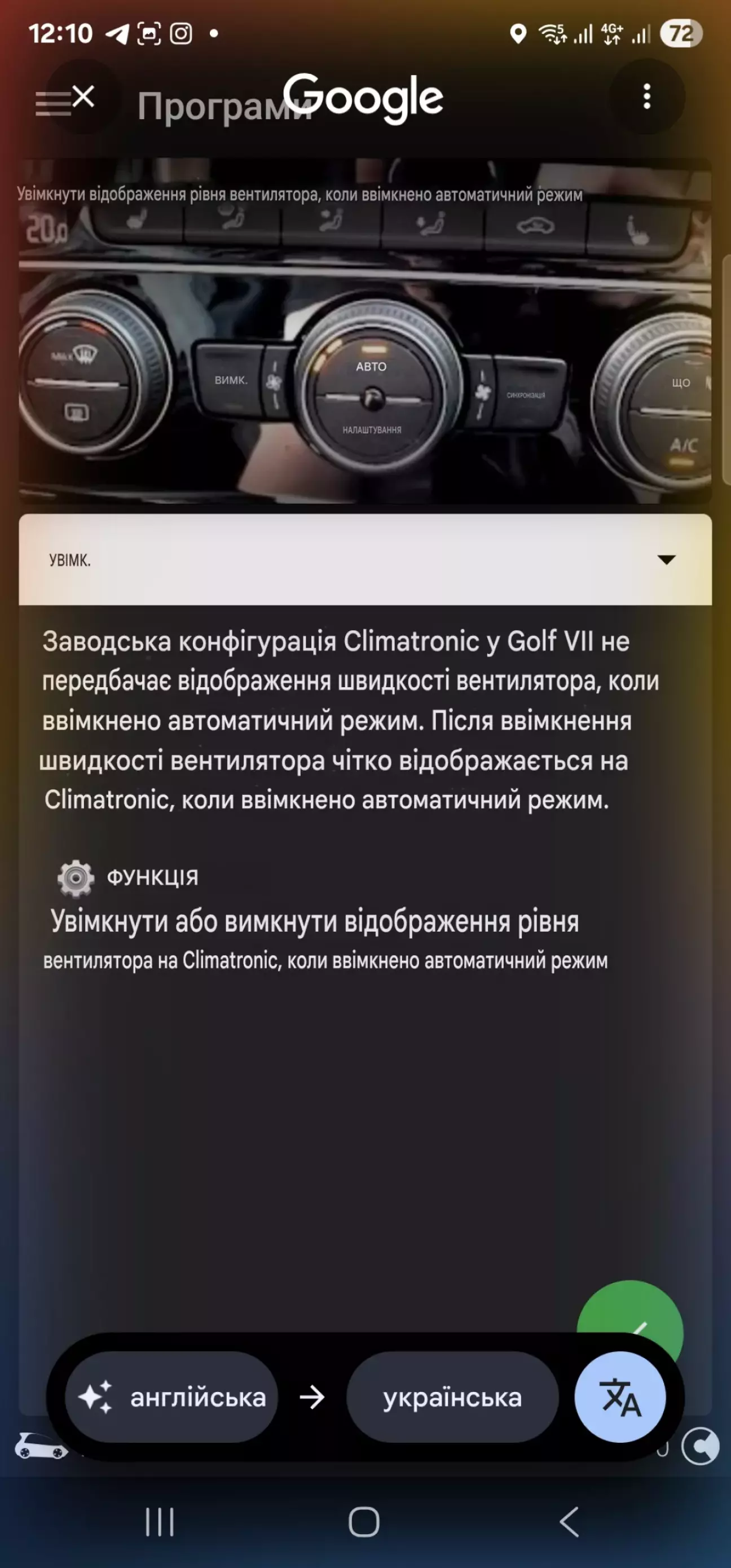8.Відображення швидкості вентилятора системи кондиціонування в авто режимі.