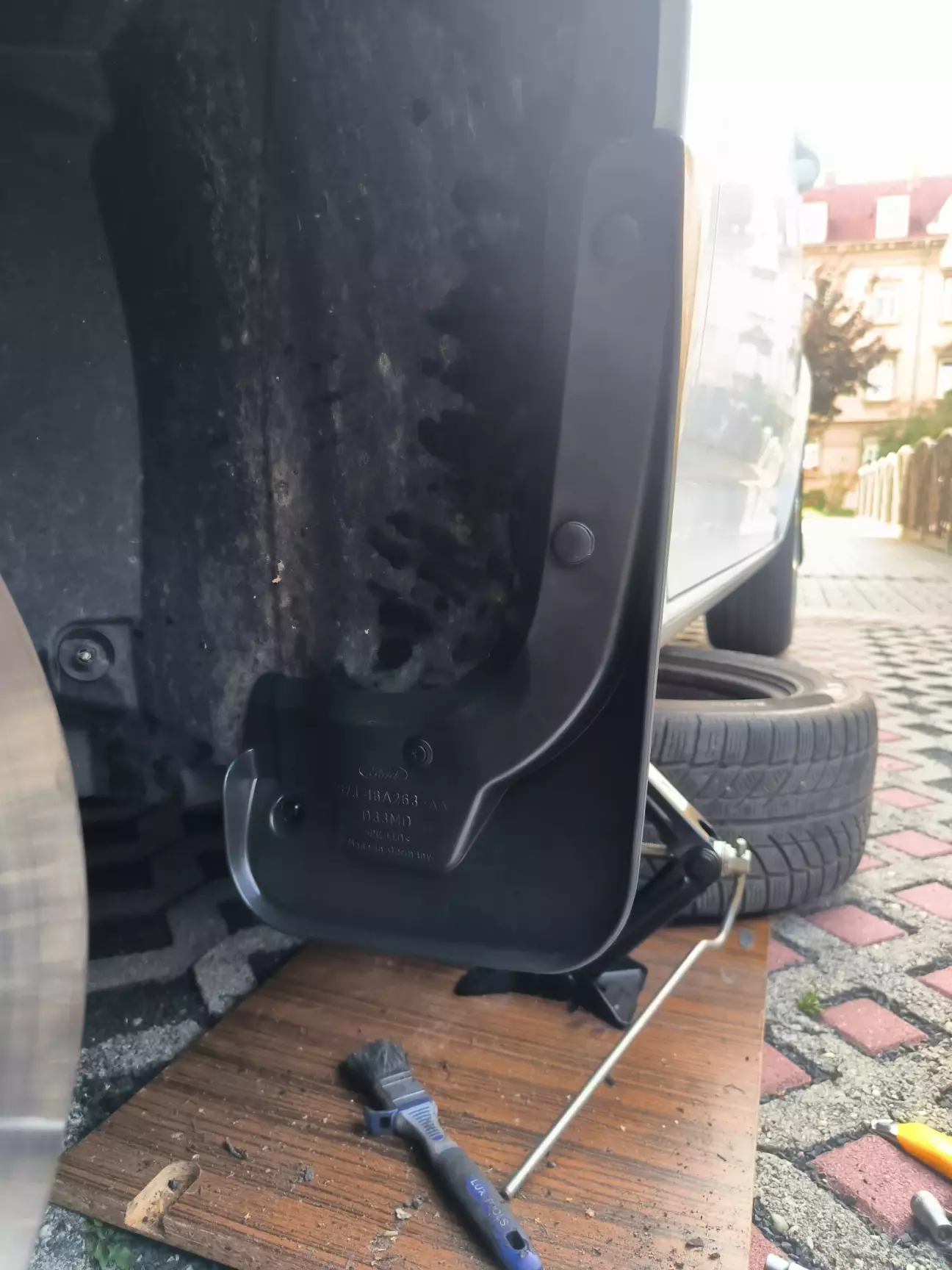 Начитався що штатні бризговики натирають крило і бампер тому замовив на аліяекспрес плівку та поклеїв її ( в завоцькому виконанні вона теж йде) але в комплекті її не кладуть