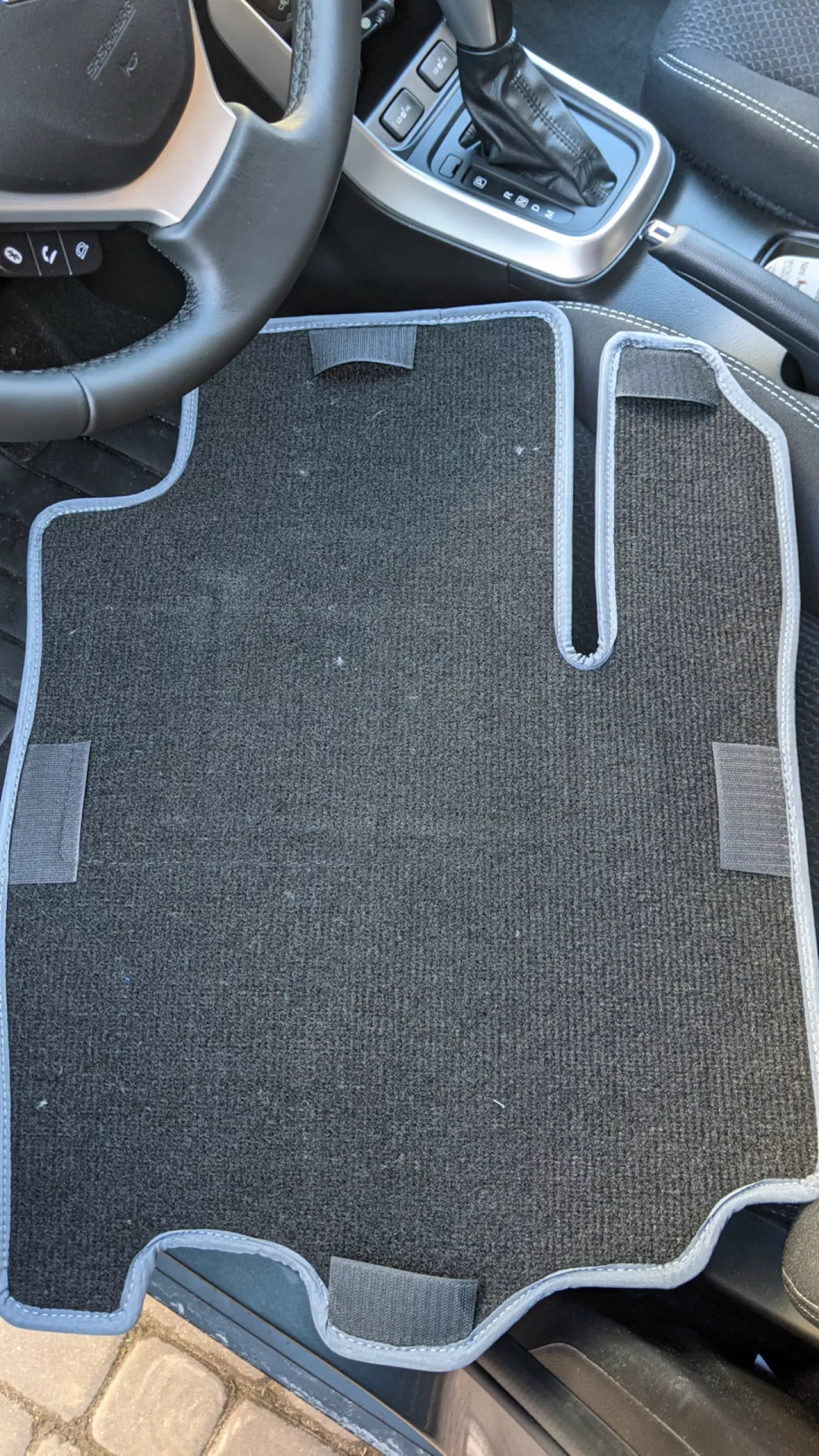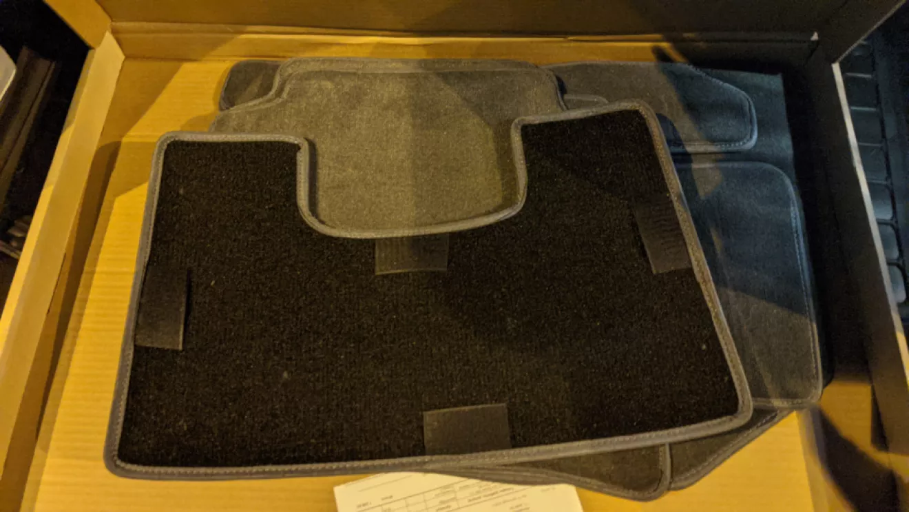 Поездив на Астре с разными ковриками, было решено брать текстильные коврики. Немного упустил момент заказа ковриков до получения машины — пришлось ездить с просто валяющимся целофаном на полу, так как погода не позволяла это перетерпеть. И вот спустя неделю после заказа (закал в день получения машины) приехали коврики. Заказывал на Авторадостях. Из приятных мелочей — липучки на нижней стороне.