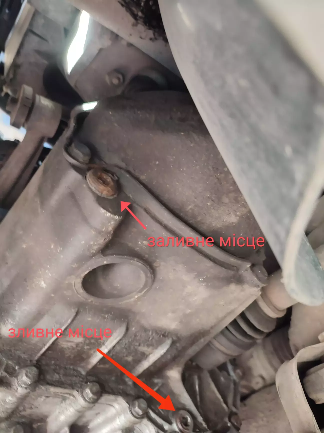 Так як я не зміг відкрутити заливну пробку КПП, заливав через сапун зверху коробки. Якщо відкрутив би - потрібен шприц для заливки мастила.