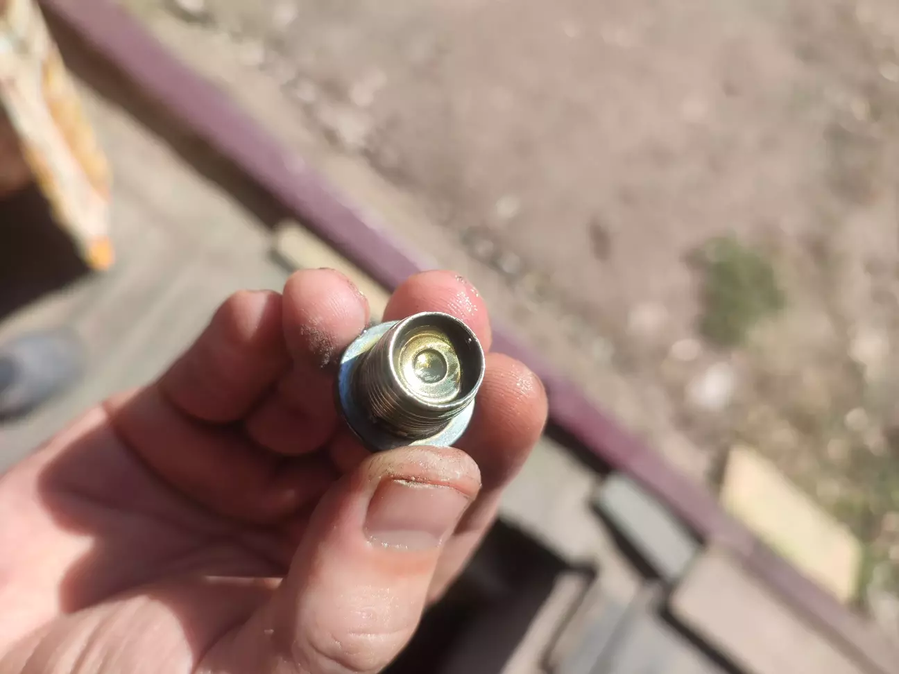 Далі ключем чотирьохгранним на 8 відкручуємо зливну пробку, підставляємо посуд під масло, стікає 2 літри, якщо з КПП все в порядку і ніде не підтікає. І обдивляємося пробку. На ній є магніт, контролюємо чи немає стружки. В моєму випадку все в порядку.