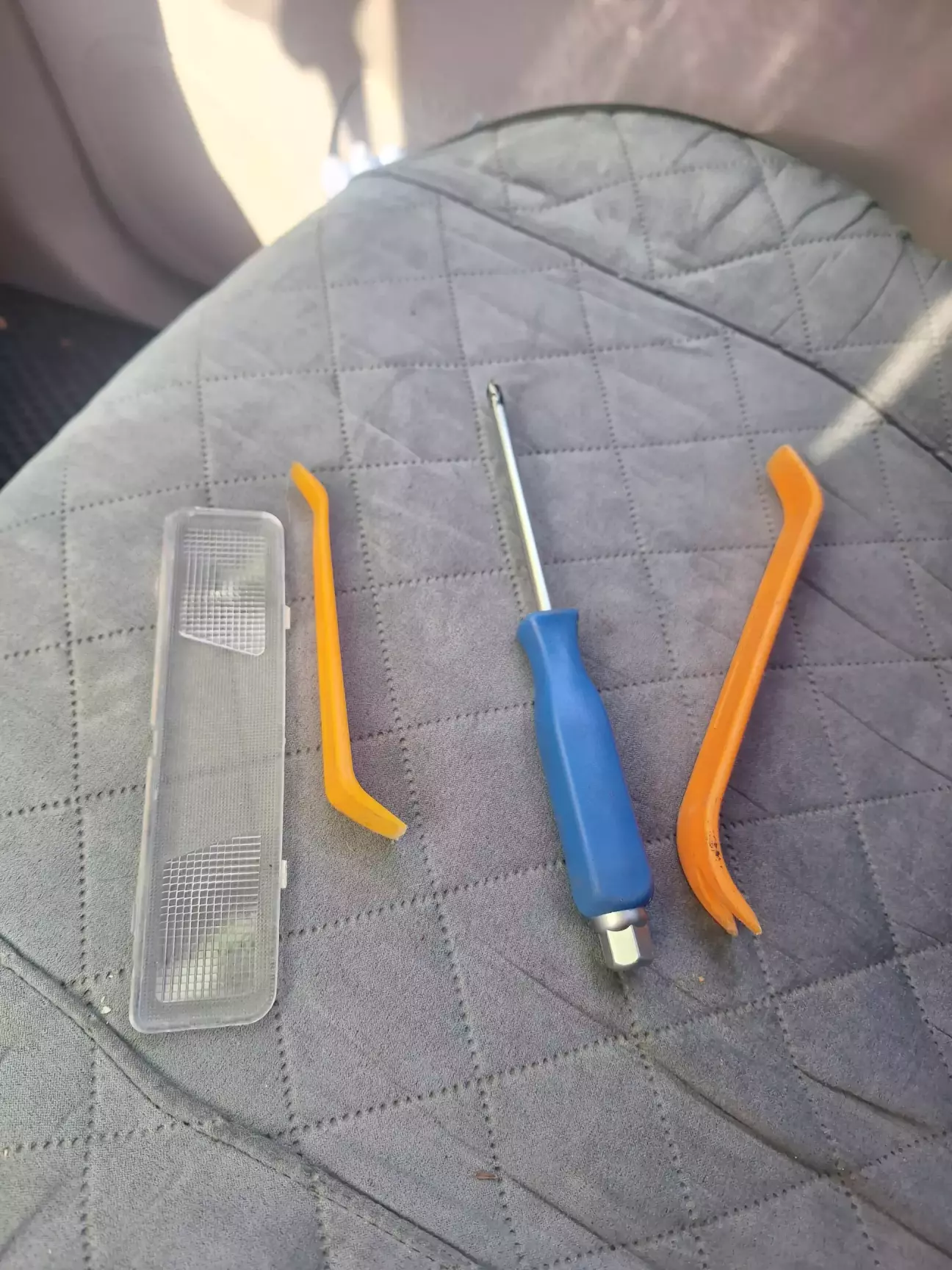 Викруткою краще викручувати гвинтики, а не знімати плафон)))