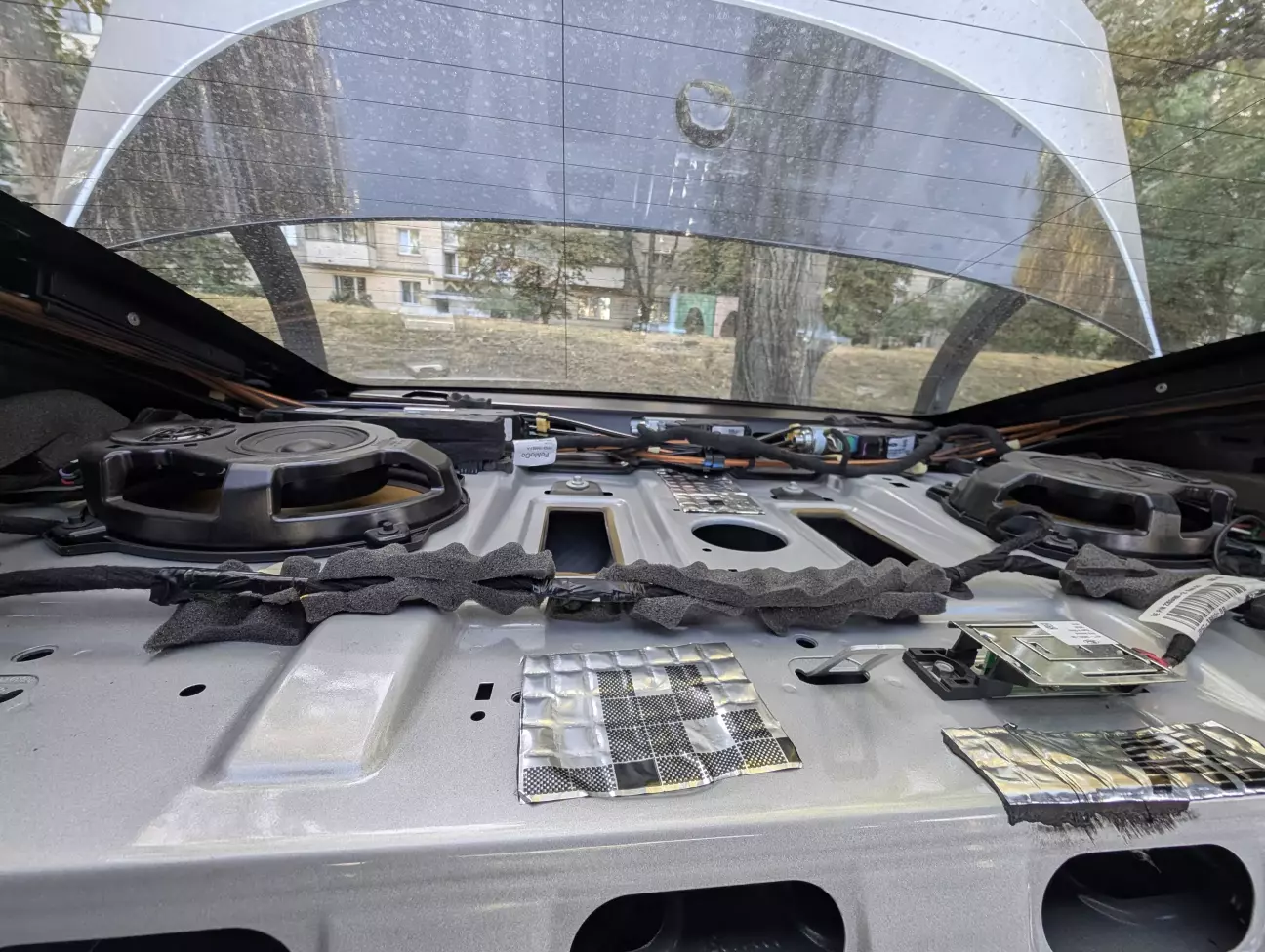 Потім було розібрано все що знаходиться за задніми дверима, все так само проклеєно антискрипом по кромках, десь додано зовсім трохи вібри і зовсім трохи шумки.