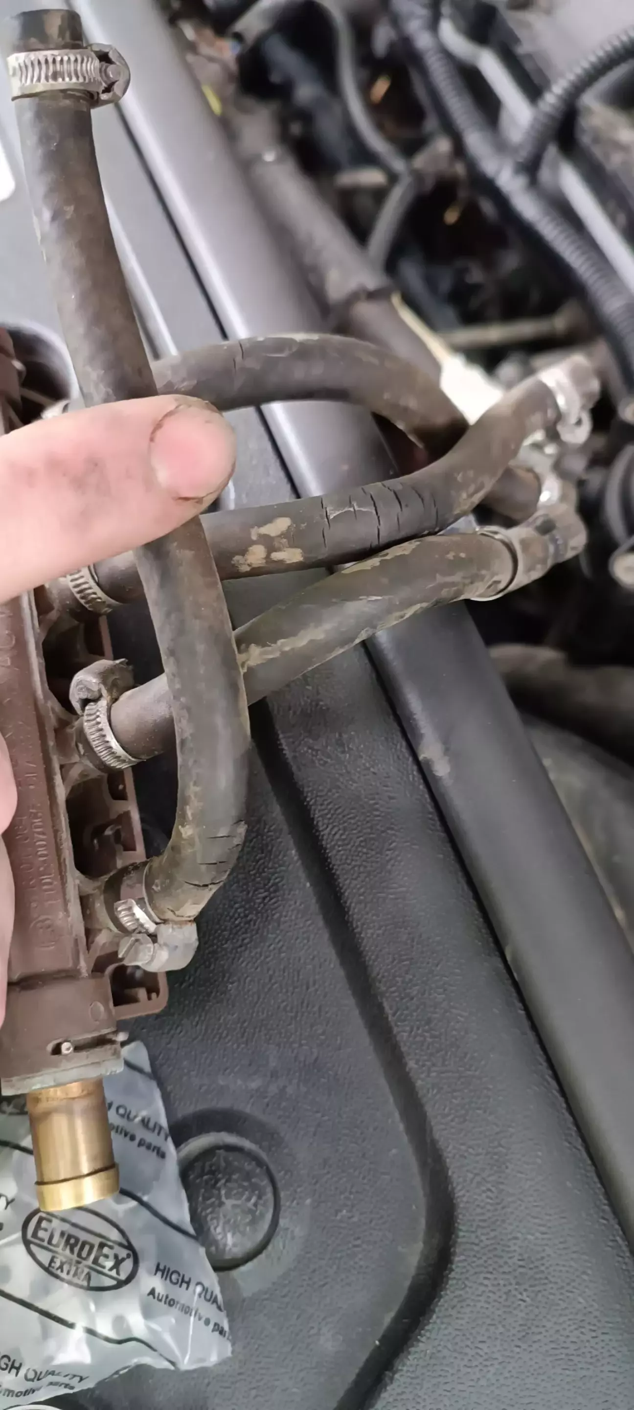 І головне шланги на форсунки гбо, стоять прикручені до захисту паливної рампи. Хоча всі інші шланги майже як нові. А ці прям всі потріскані, добре що не пропускають, але прям дубові