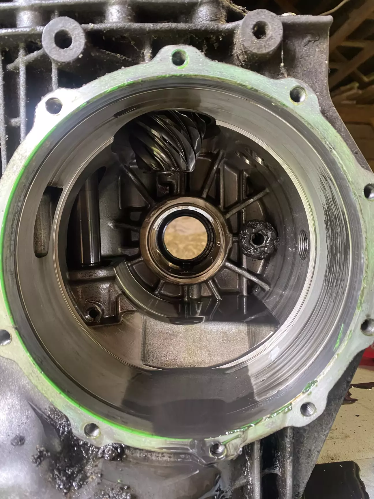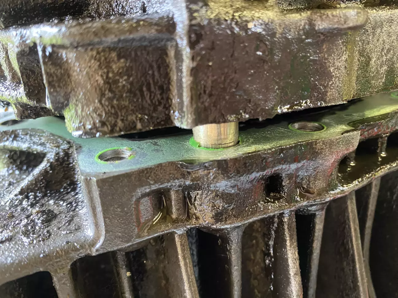 Зауважу що жодної прокладки фізично не було, тільки якийсь зелений герметик, крихкий і досить твердий. Тому збирати назад треба буде теж на герметик, але який це ще питання.