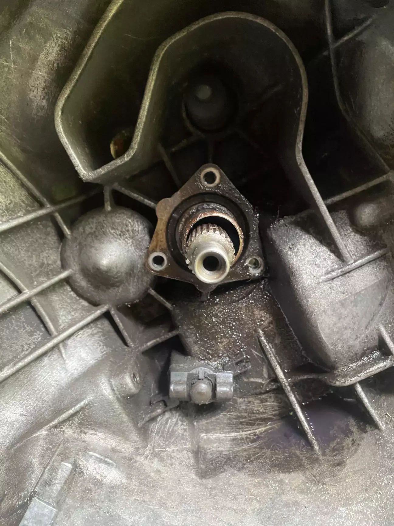 Далі заглядаємо в корус коробки де ставиться маховик, і на валу вхідному відкручуємо кришку яка кріпиться 3шт Т45 гвинтами.