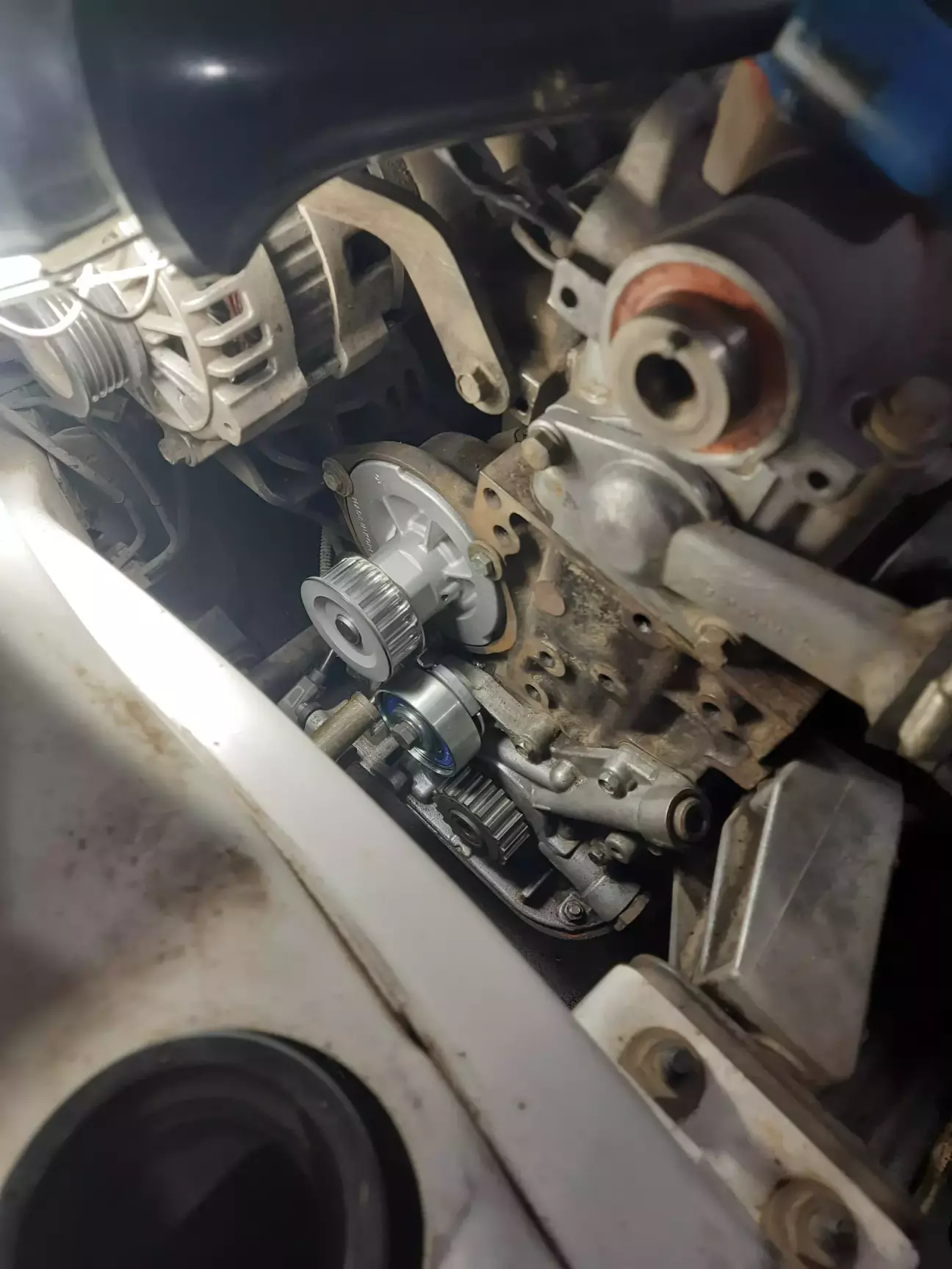 Після того як я зняв шків та захисний кожух грм зрозумів, добре що я вирішив все міняти самостійно, бо ж певно що до мене це робили на сто, або ж у гаражних майстрів, й ні про яку чистку, мийку ніхто й не турбувався.
